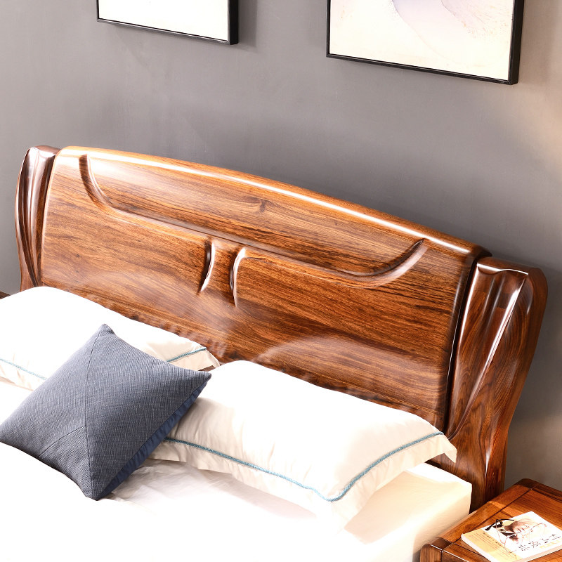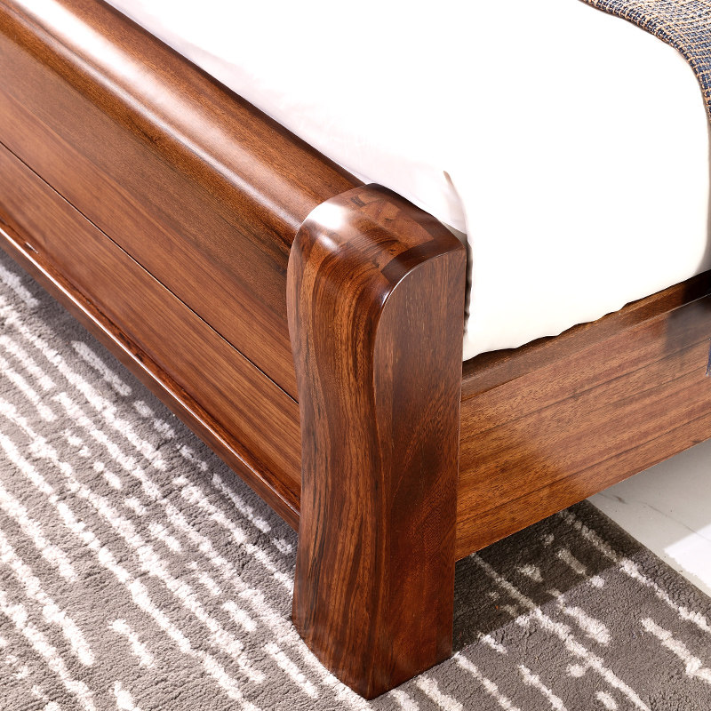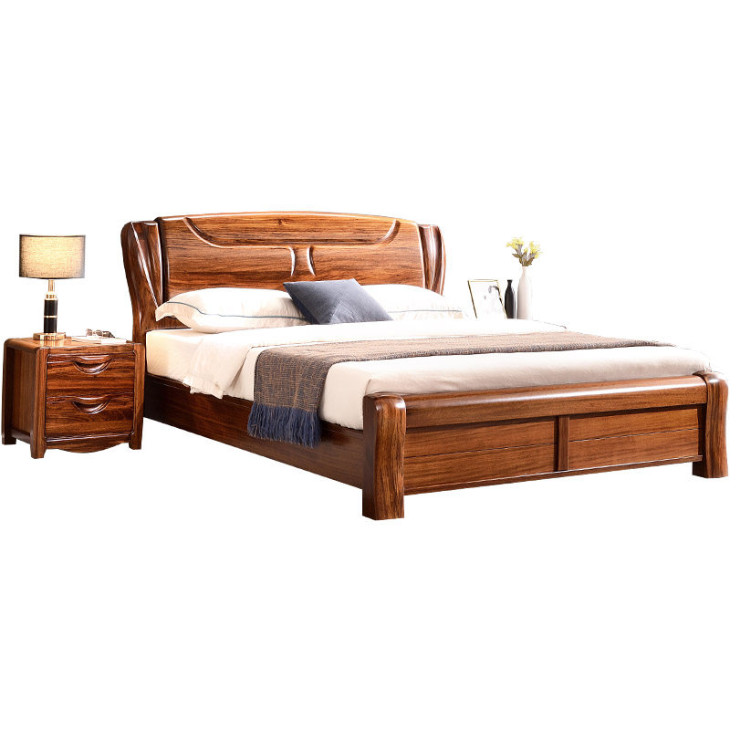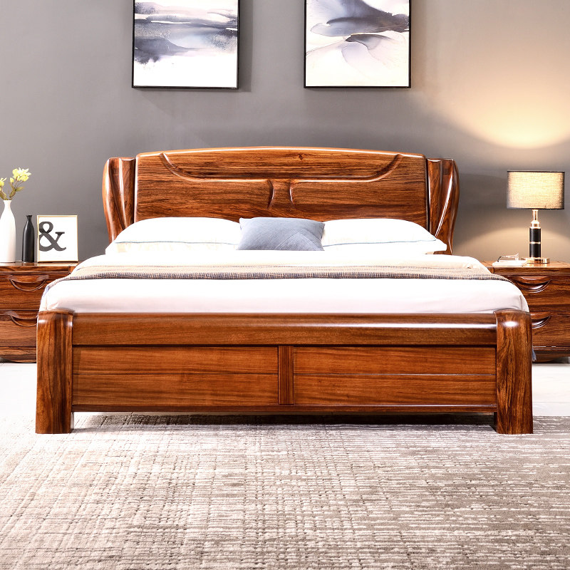 Wujin wood bed all solid wood double bed modern Chinese master bedroom wedding bed log widened 2 meters storage frame structure