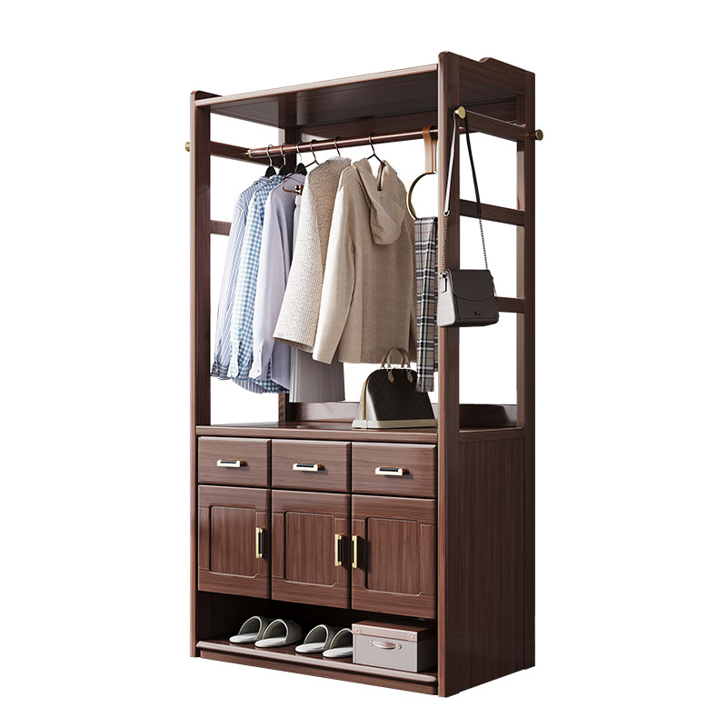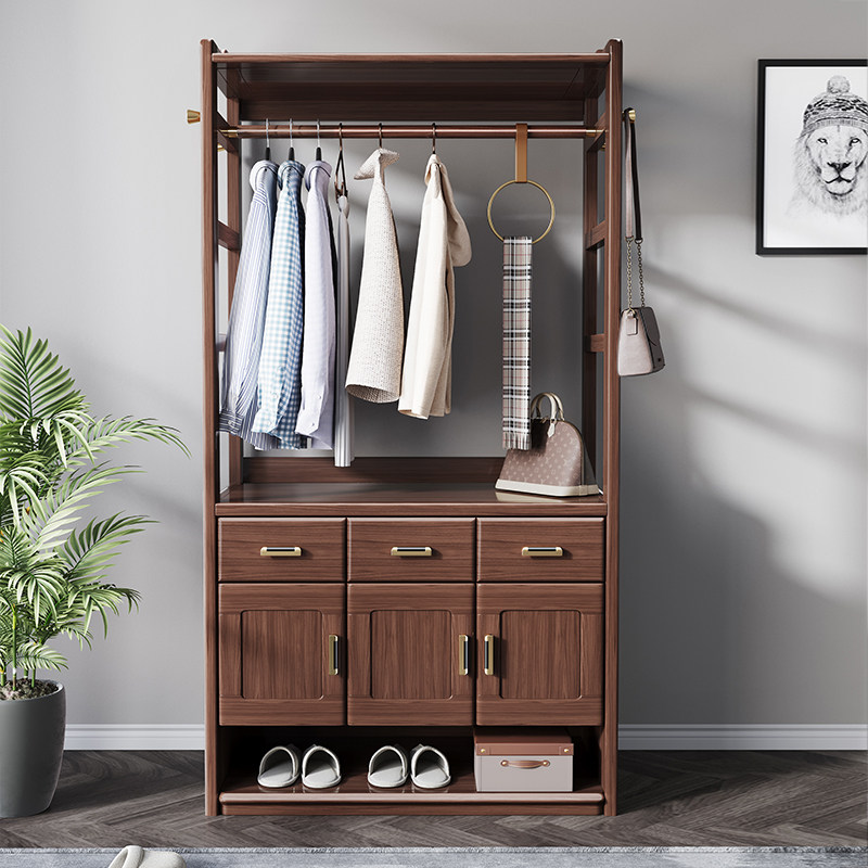 New Chinese-style walnut coat rack floor-to-ceiling solid wood storage hanger light luxury simple home bedroom storage