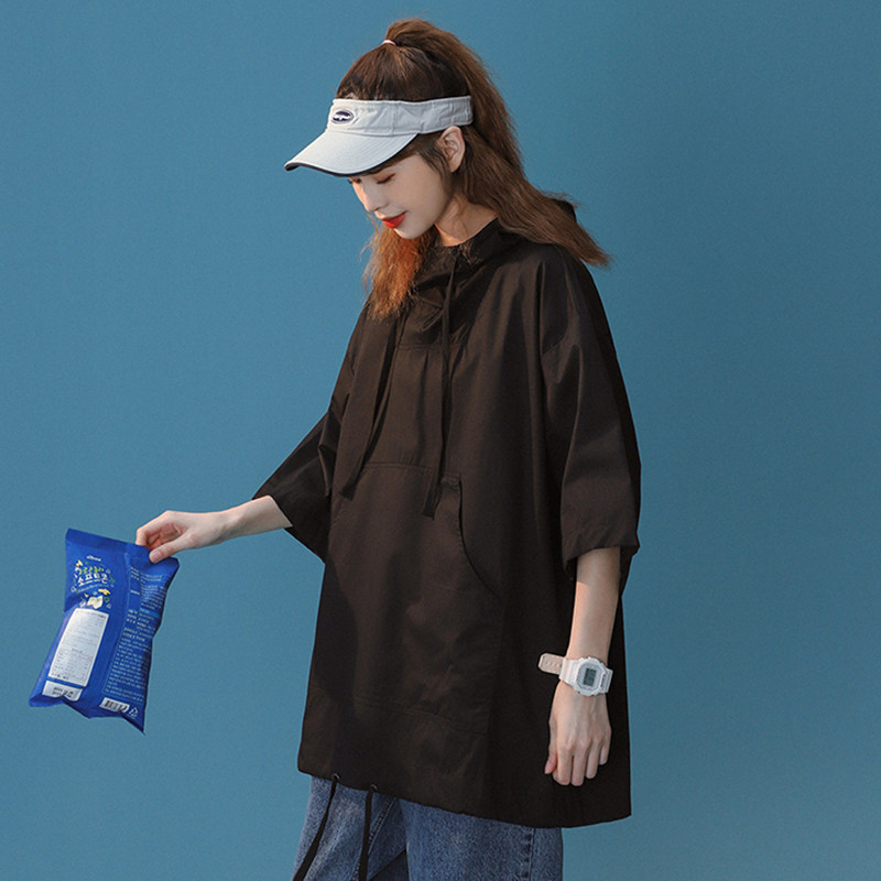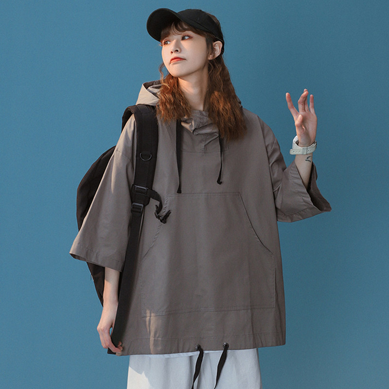 Retro American 70% Sleeve T-shirt Woman Cap Loose Ins Surge Street Hiphop Thin Tooling Short Sleeve Jacket Summer