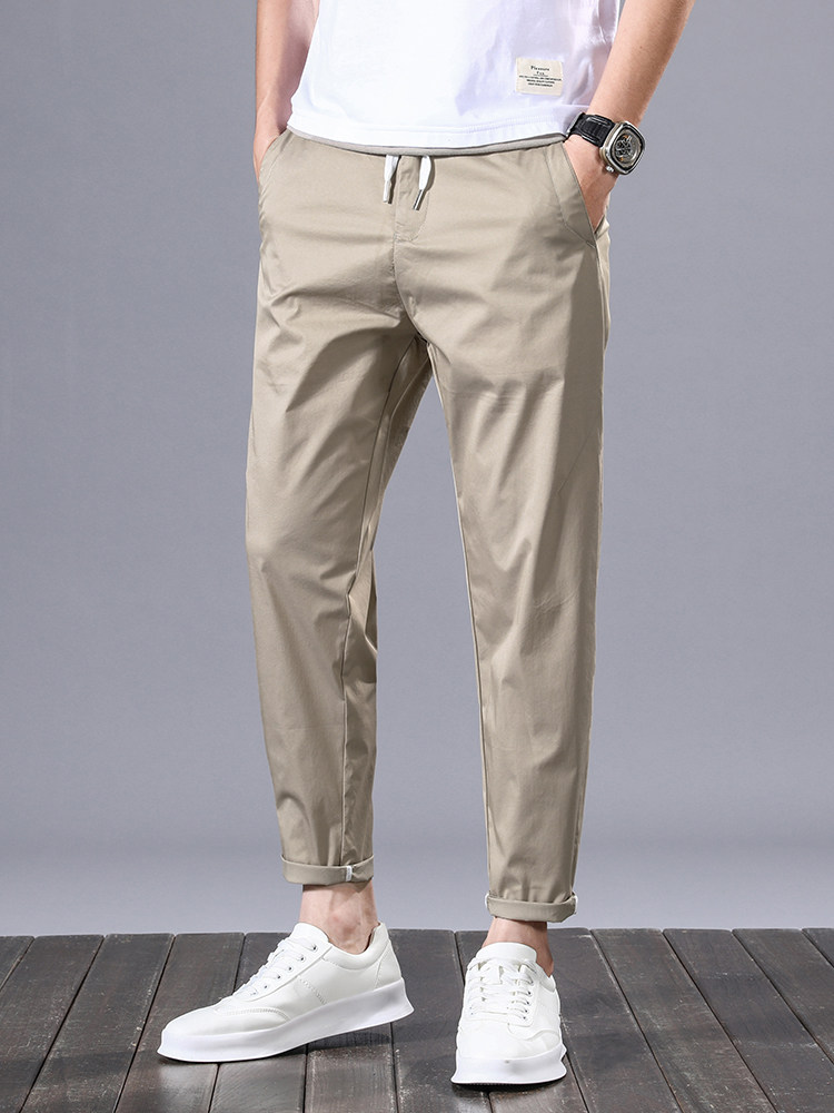 Casual pants men's summer thin section Korean style trendy slim feet tooling nine-point pants men's loose all-match long pants