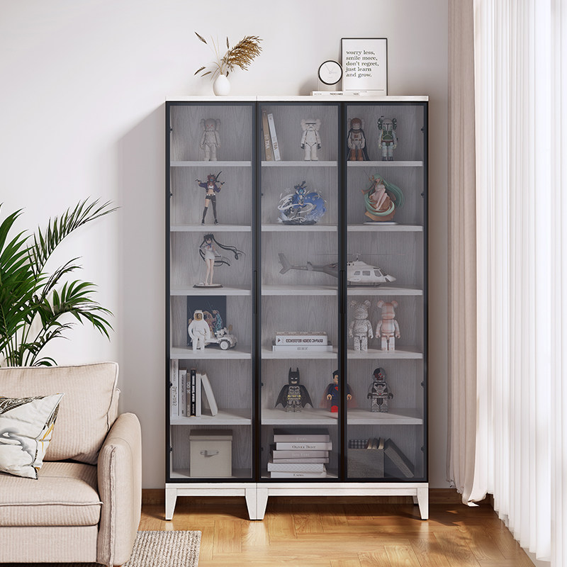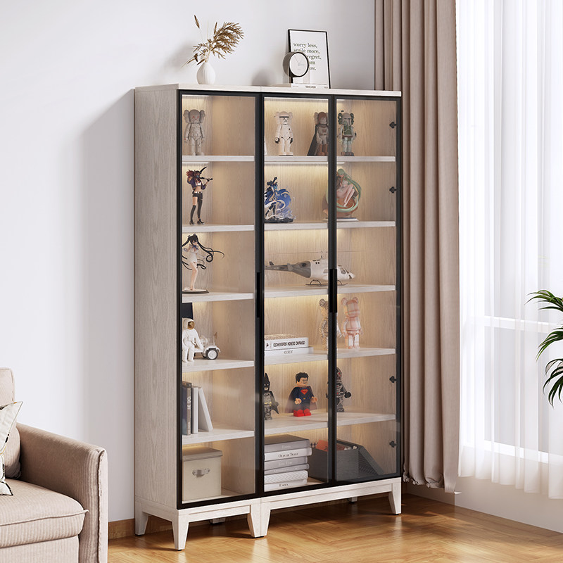 Dust-proof glass bookcase solid wood modern minimalist with door one whole wall full wall white two-door home leaning against the wall floor