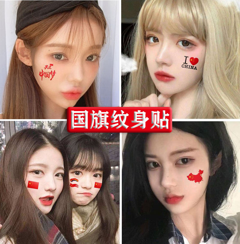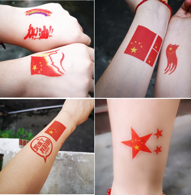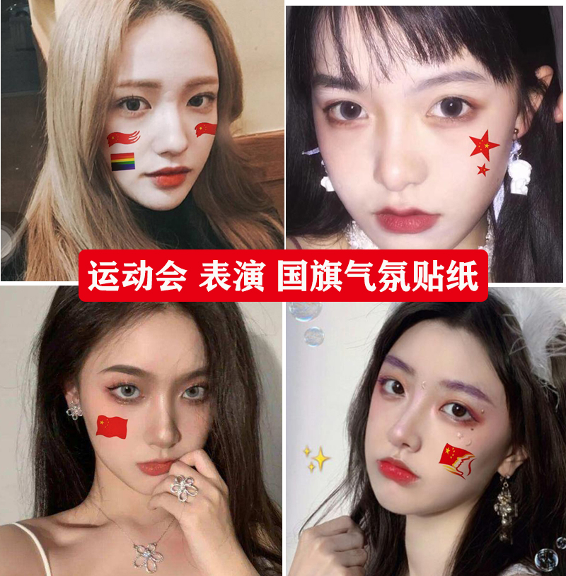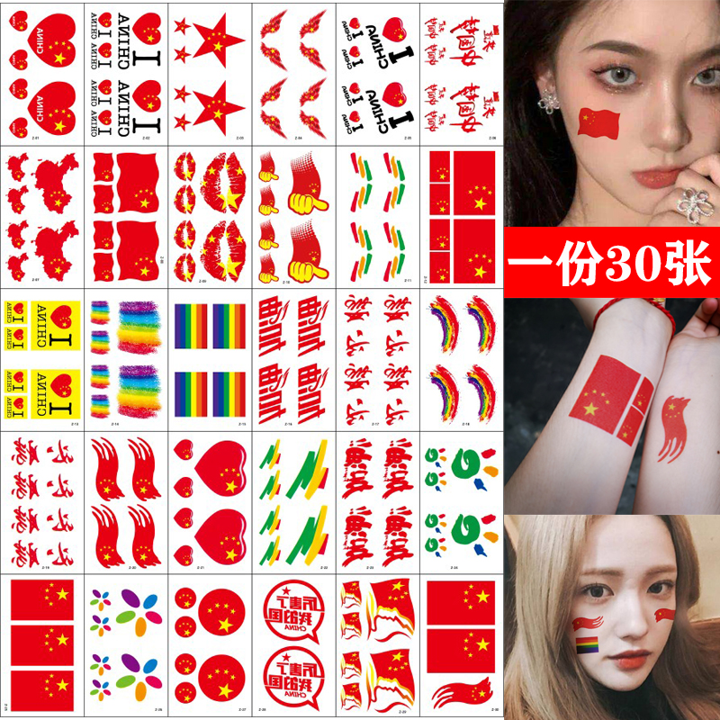Flag tattoo stickers waterproof sports meeting face stickers five-pointed star marathon National Day cheerleading children's face stickers