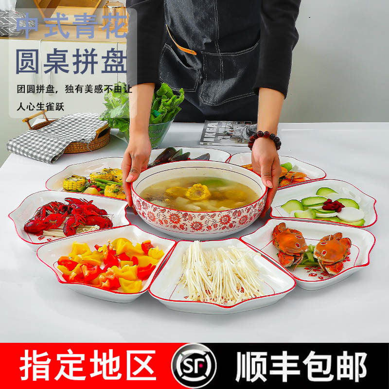 Set plate net red set reunion platter tableware combination fan-shaped ceramic plate household dishes round table Chinese New Year plate