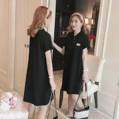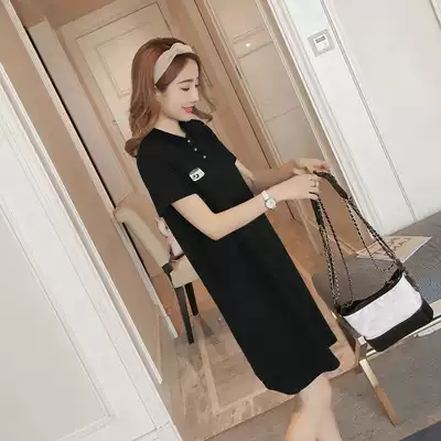 2021 summer new products medium and long version of the dress short-sleeved cotton T-shirt skirt Korean POLO collar pregnant women loose large size