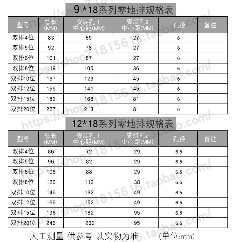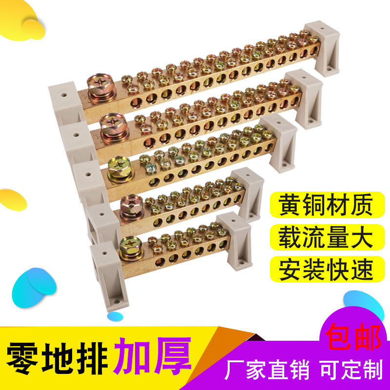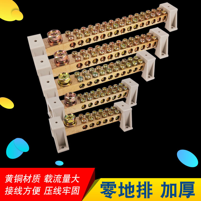 12*18 Zero wire terminal block grounding row zero row double row zero row wiring copper row grounding wire terminal distribution box 8 holes