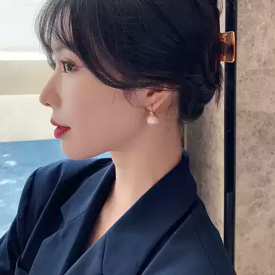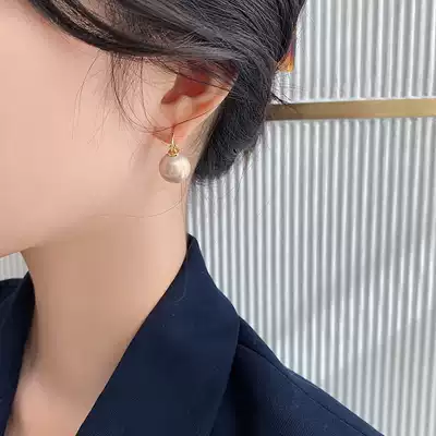 Pearl earrings 2021 New Tide round face thin atmosphere earrings female sterling silver senior sense temperament light luxury versatile