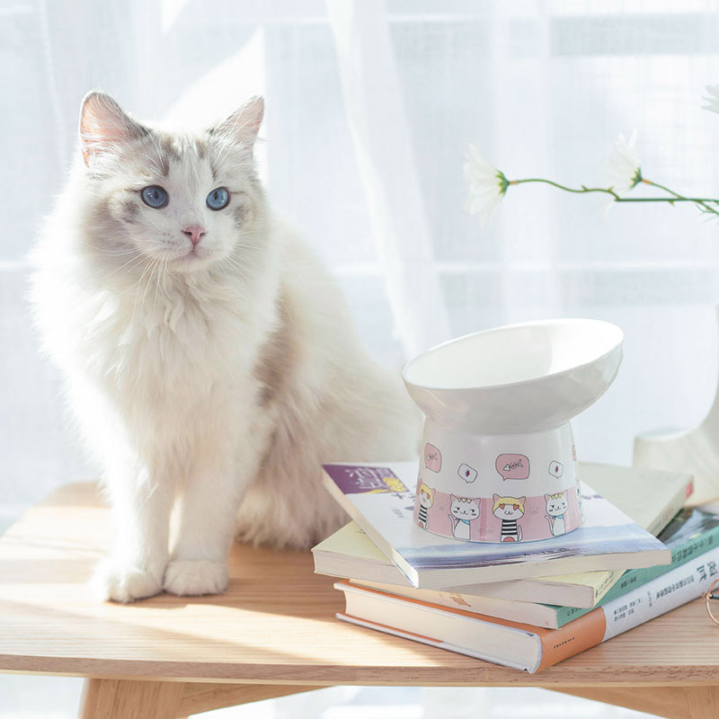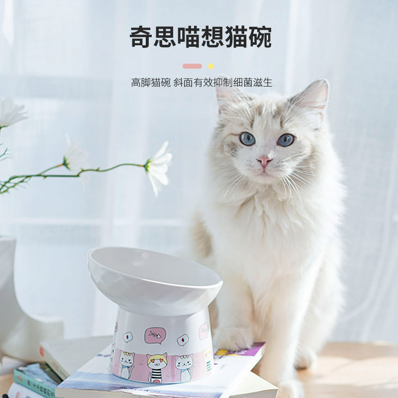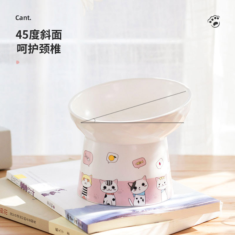 Cat bowl ceramic protection cervical spine anti-overturning high-footed cat food basin oblique mouth drinking cat food bowl dog bowl pet cat supplies