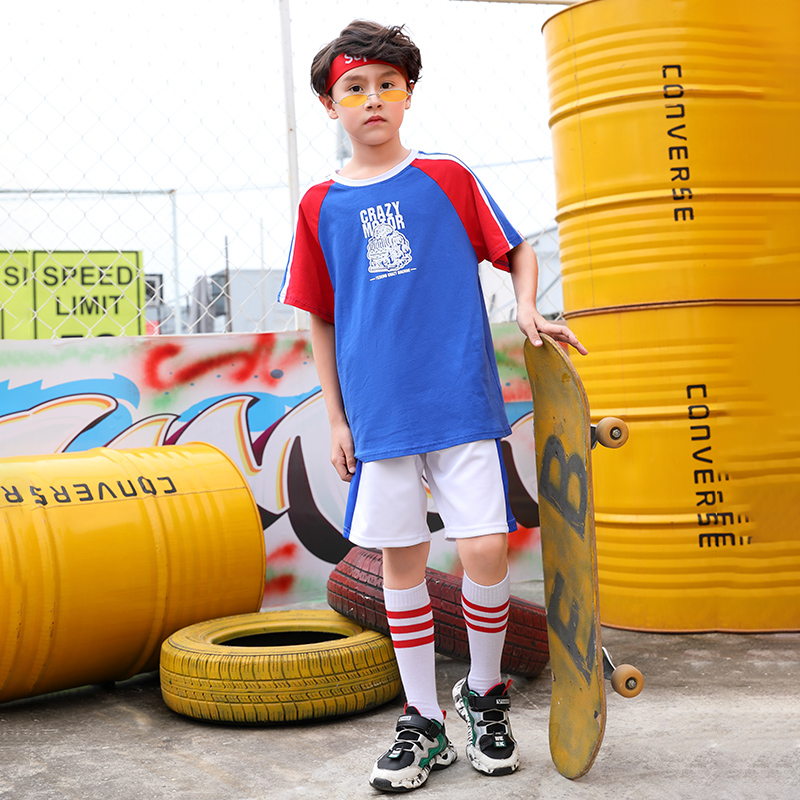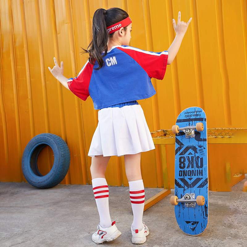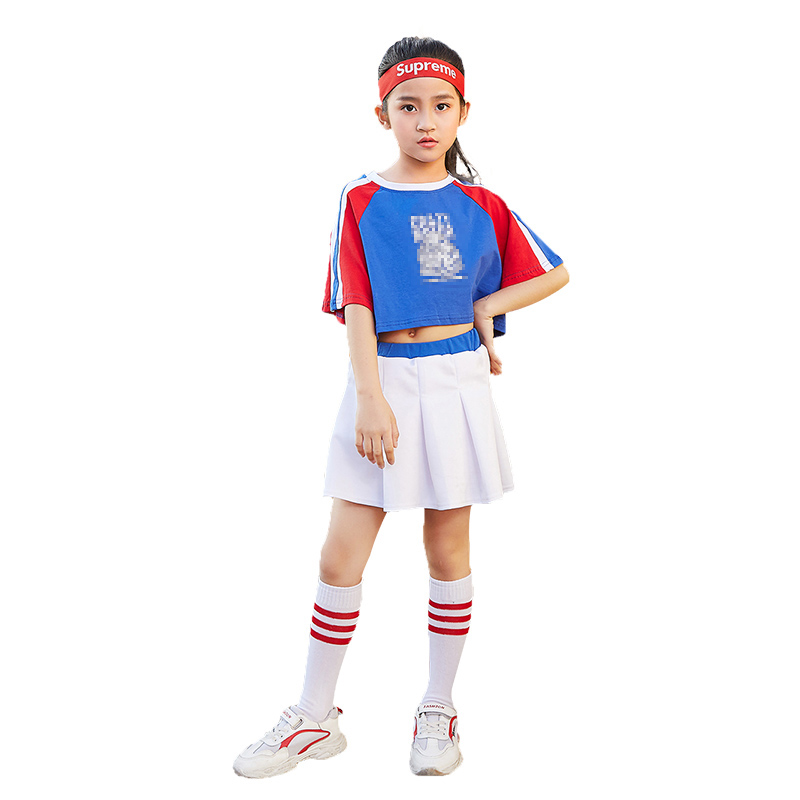 Children's cheerleader clothes pupil street dance jazz costume Short sleeve set Blue Spring and Summer
