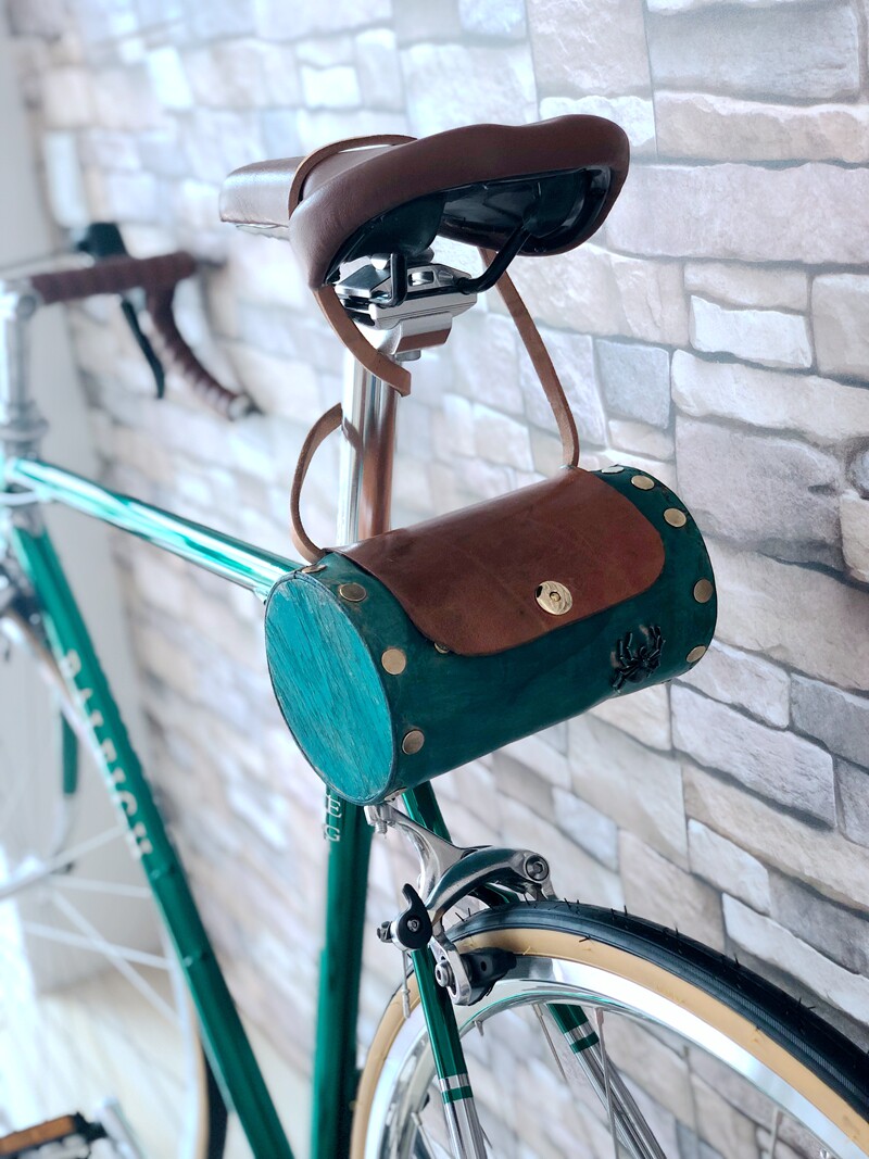 Retro bicycle bag top layer vegetable tanned leather handmade with solid wood small cloth car bag Brompton