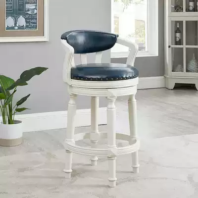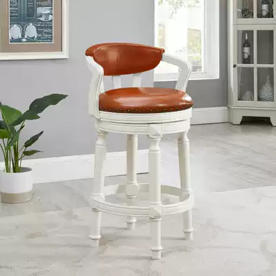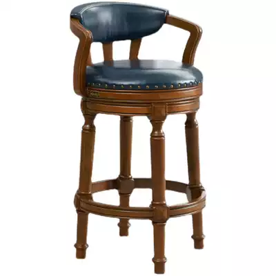 Wood Dika American solid wood bar chair rotating backrest bar chair light luxury high foot chair leather bar chair household