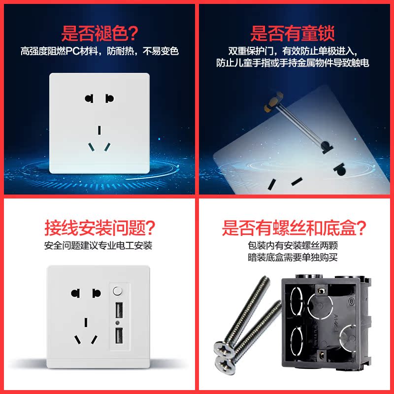 Futian A68 Hengxin Series 86 Switch Socket Wall Household Air Conditioner 16A Open Double Cut Five-hole Magnolia White