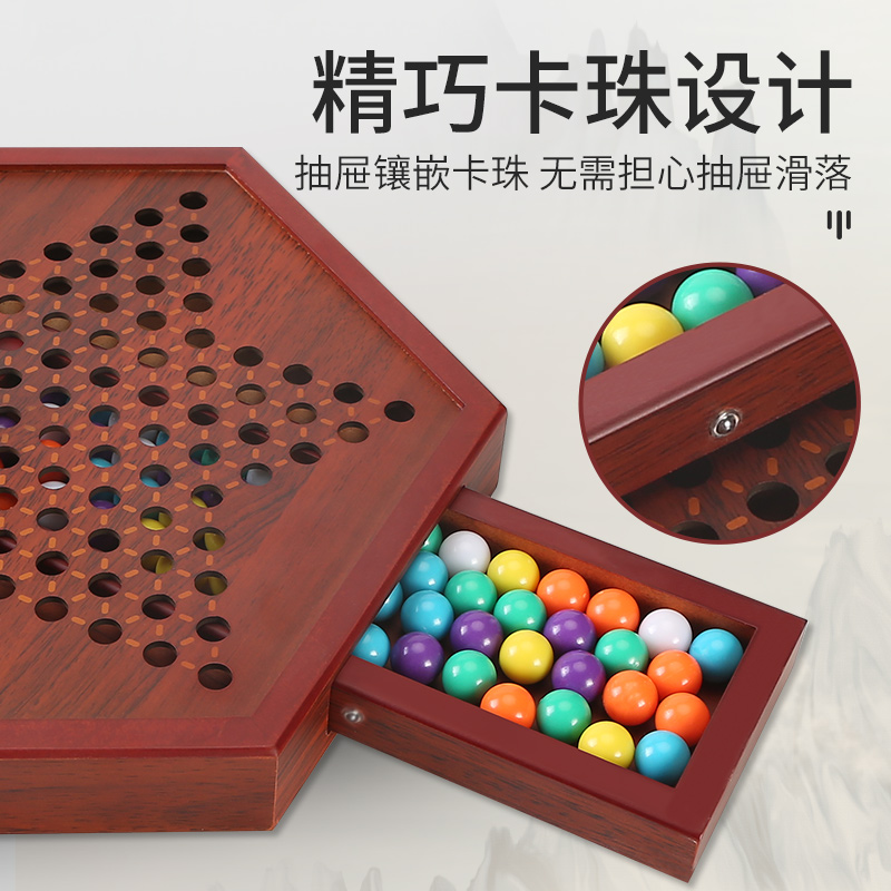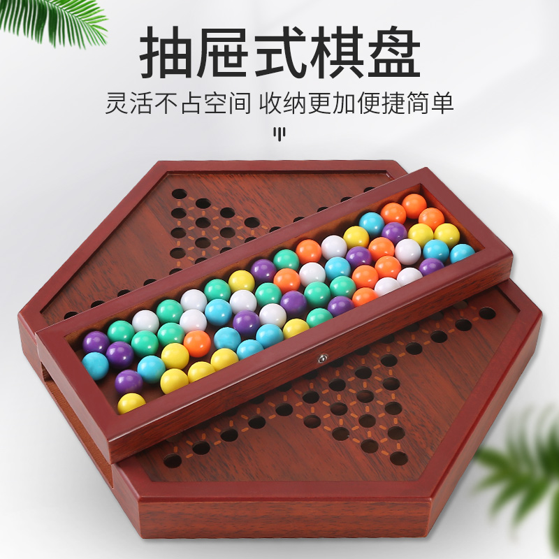Checkers Children Puzzle Glass Balls Wood Grown-up Old-style Brush Sub Marbles Pearl Colorful large Number of Drawer Poko Chess