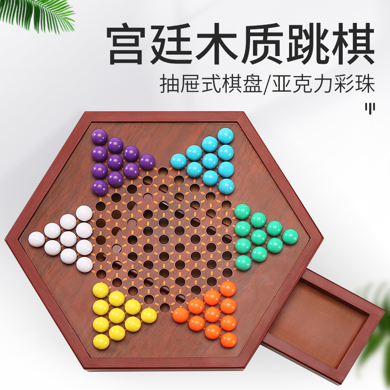 Boutique acrylic checkers with drawer-type wooden chessboard 60 grain safety large number of acrylic pinball hexagonal checkers
