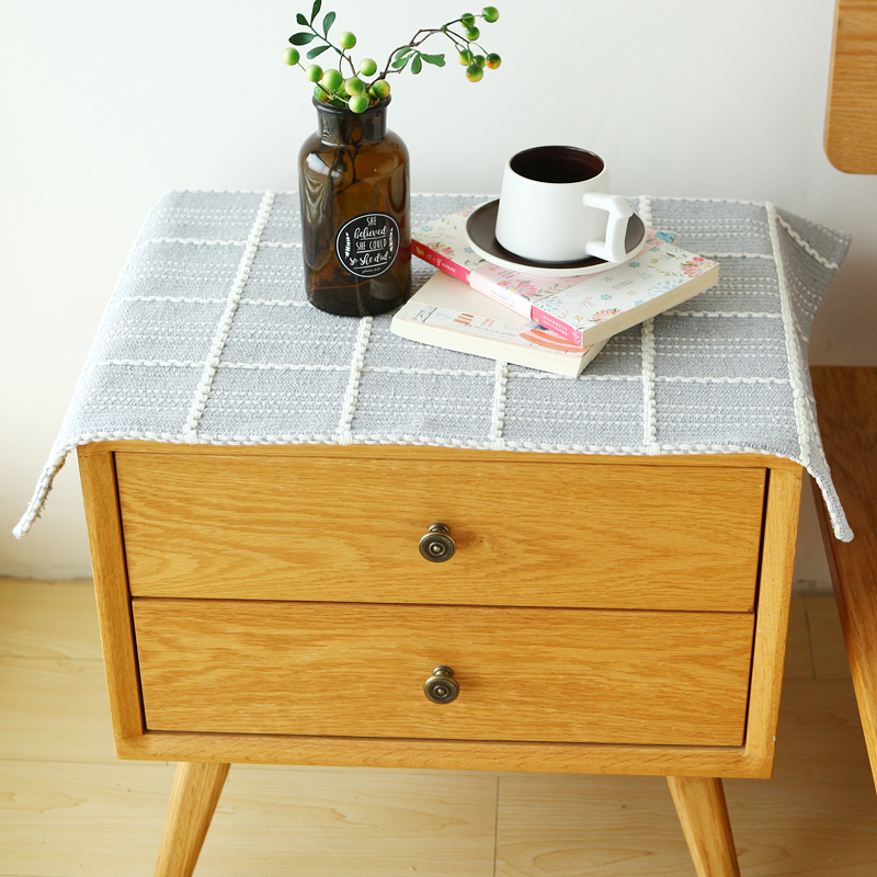 (Clearance) Weimi 6651 Simple Nordic Cotton Thread Woven Dustproof Cloth Cover Towel Anti-slip Bedside Table Cover Fabric Art