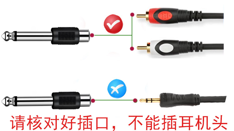 6-5mm large two-core transfer RCA Lotus mother converter Mixer Guitar Switching Line Audio Sound plug connector