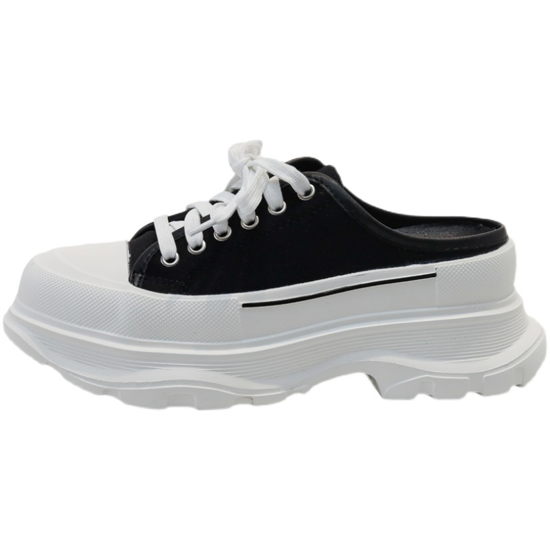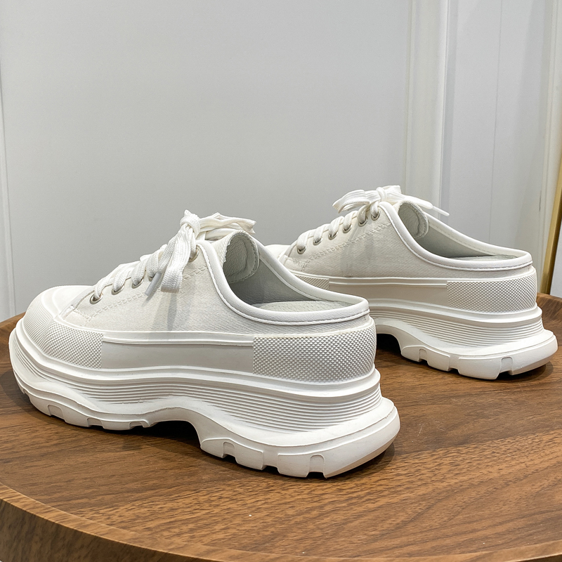 Baotou Semi-slippers female outside wearing 2022 Summer new interior heightening sloth people thick bottom pine pastry cloth shoes Ins tide