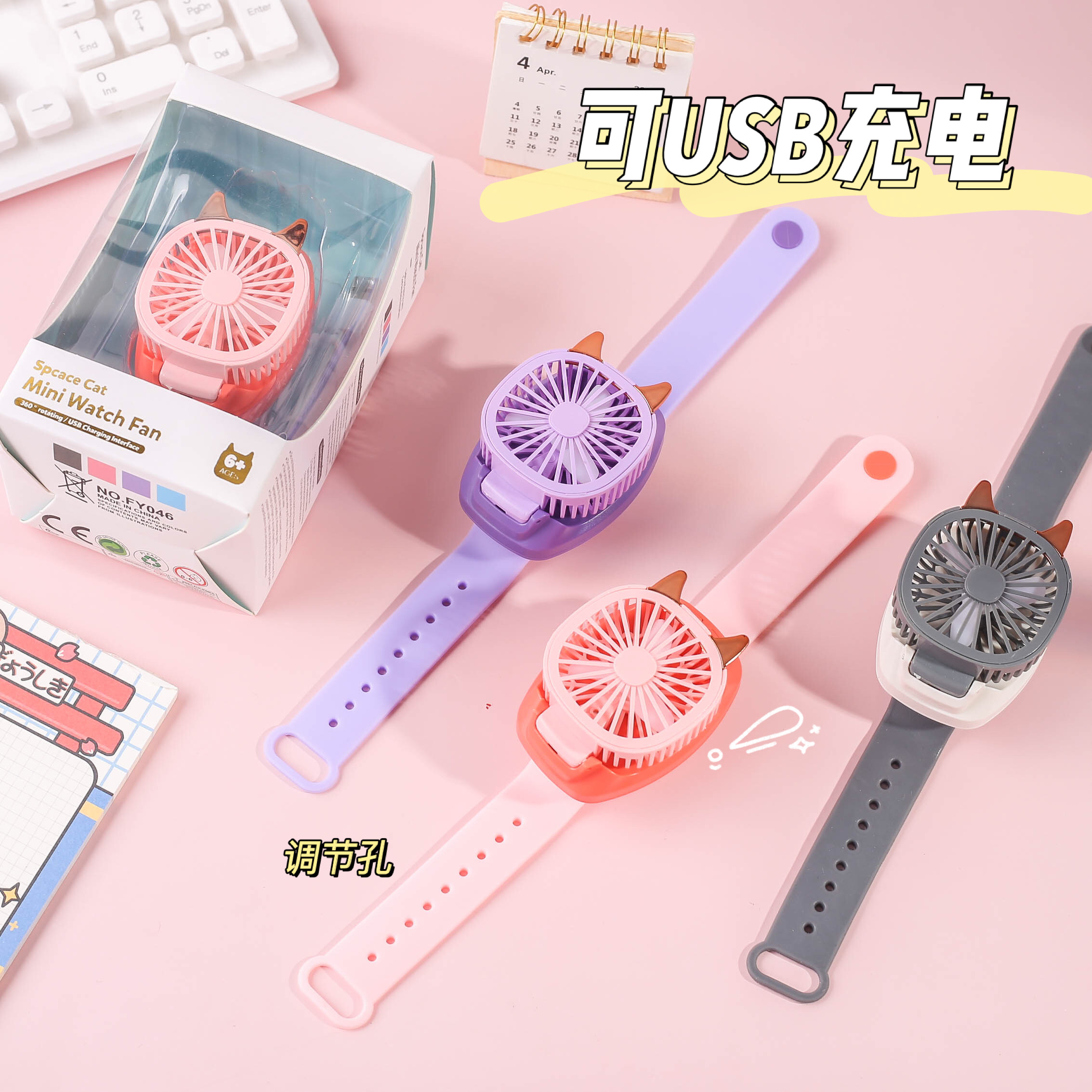 Watch small fan usb mute charging mini portable wrist student with a child cartoon girl
