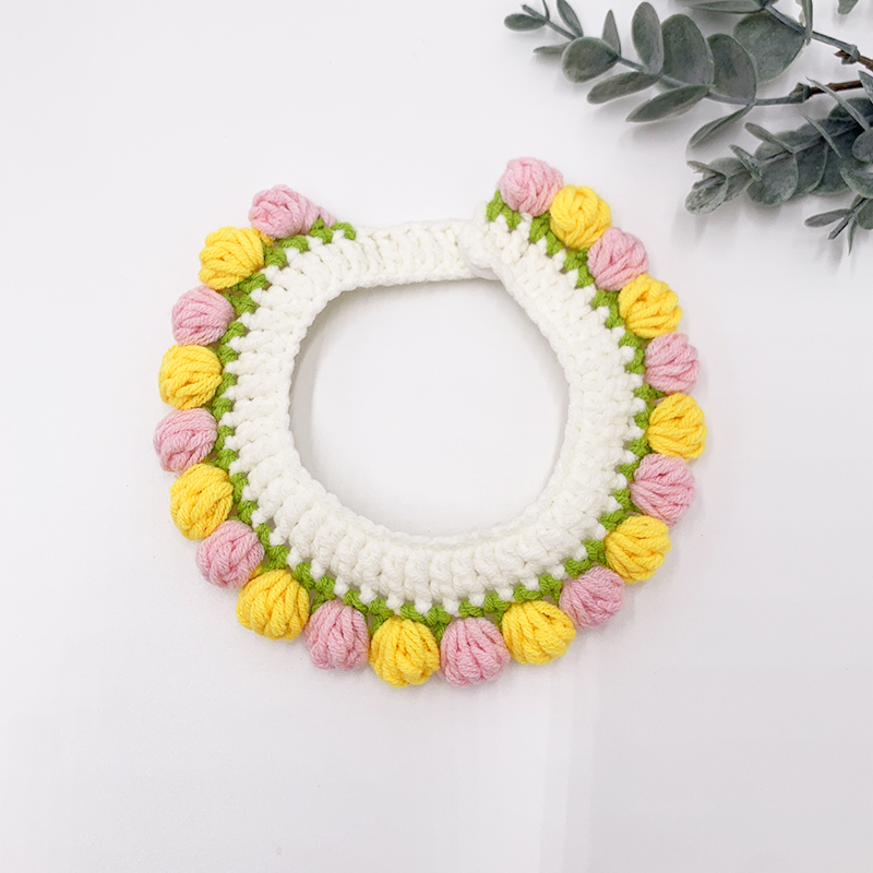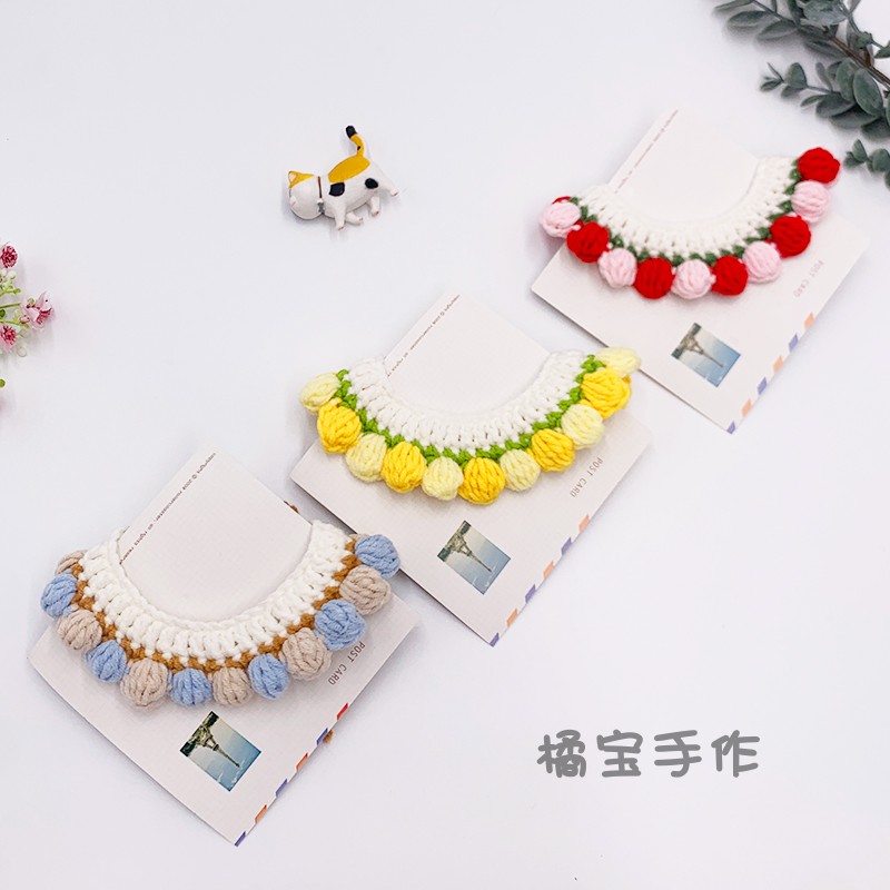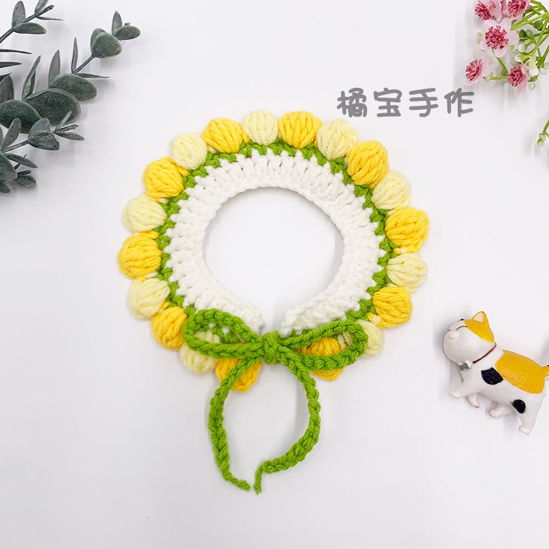 Cat collar bib handmade wool knitting ornament flower comfortable pet identification cute English short Teddy dog