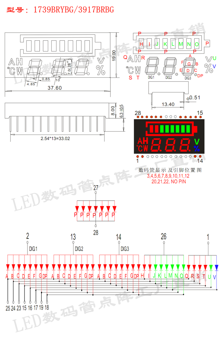 Color screen power and voltage display glow tube power, voltage and current display 1739BRBYG 3917BRBG