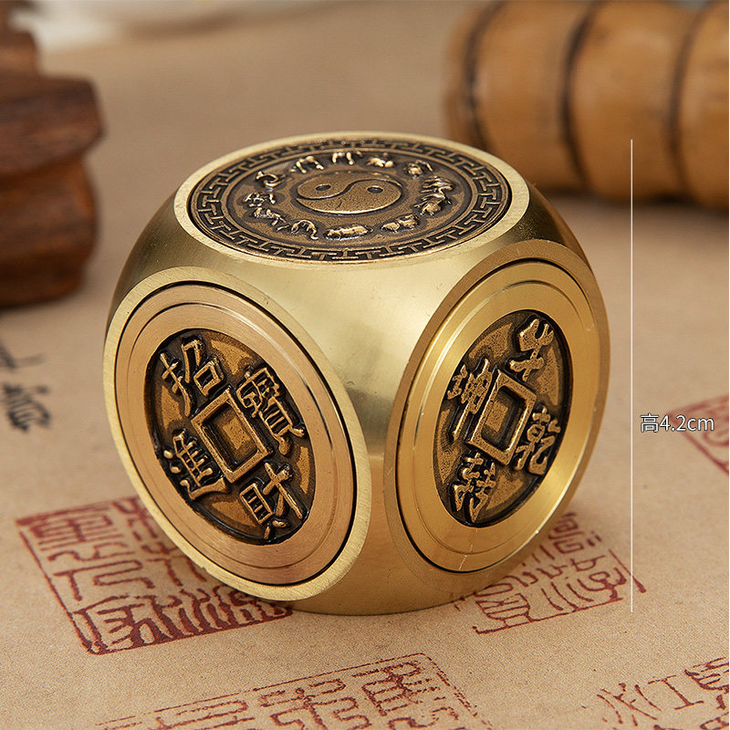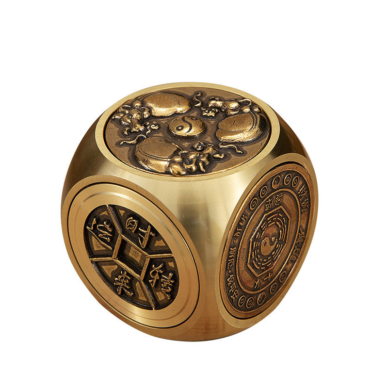 Brass Kines dry kun Six faced swivel handlebar piece to run money creative pure copper forwarding zodiac dice swing piece-Taobao