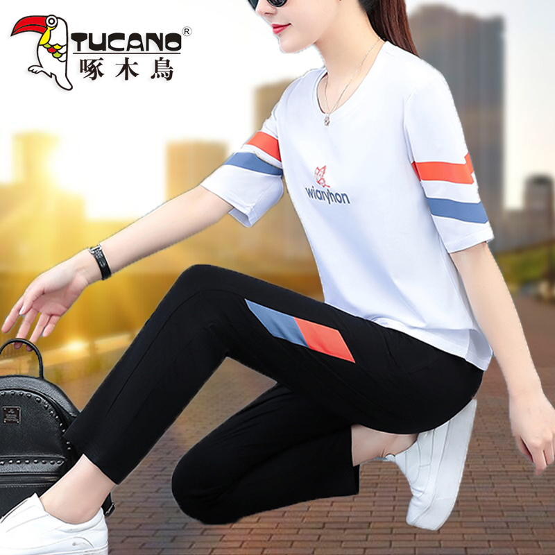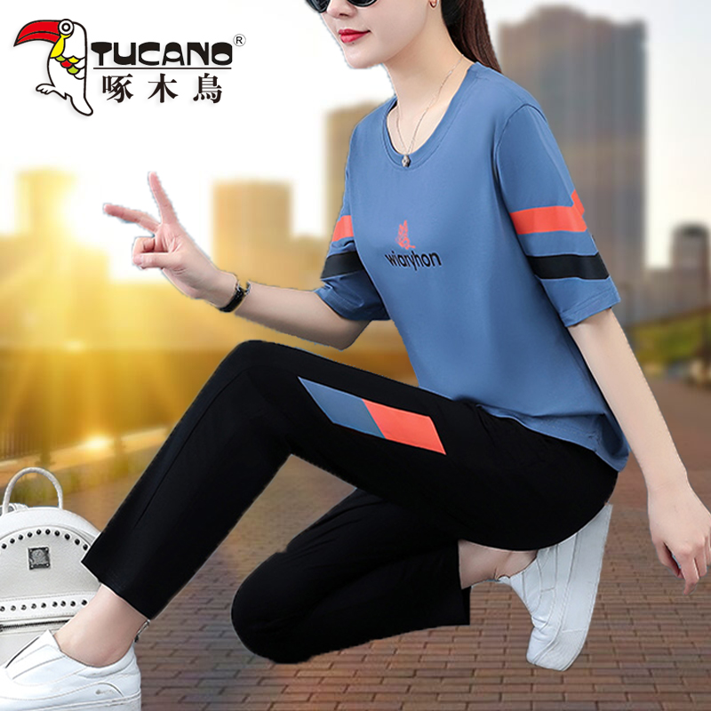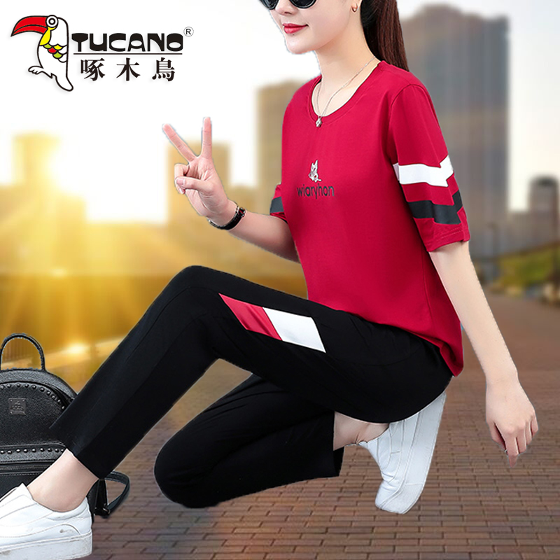 Woodpecker Sports Suit Women's Summer 2022 New Short Sleeve Large Size Cotton Loose Thin Section Breathable Two-piece Set
