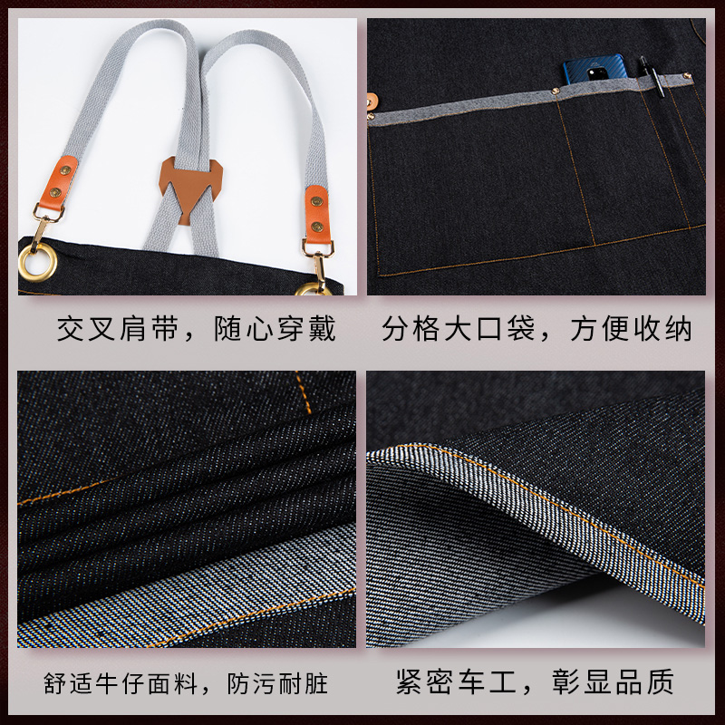 Online Red Fashion Denim Apron Custom Logo Printed Word West Restaurant Attendant Work Clothes Men And Women Paint Fine Arts