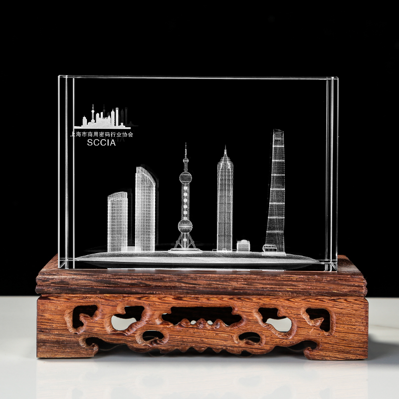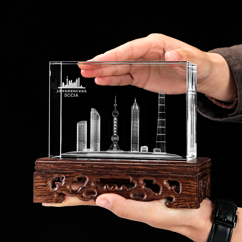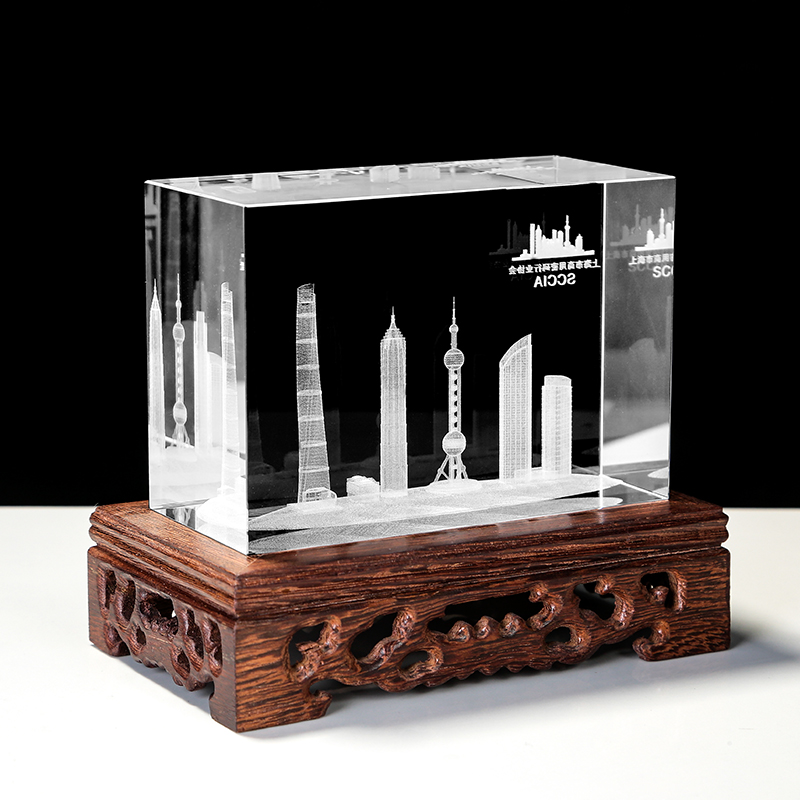Solid wood base crystal laser inner engraving Shanghai Oriental Pearl World Trade Center Universal Building Pendulum Pieces Customized Gifts-Taobao