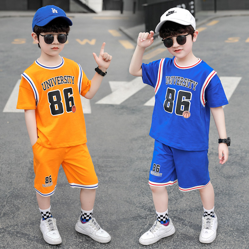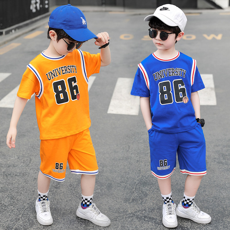 Boy Summer Clothing Basketball Suit Suit 2022 New Children Suit Foreign Pie Boy Handsome Sports Summer Nets Red Tides
