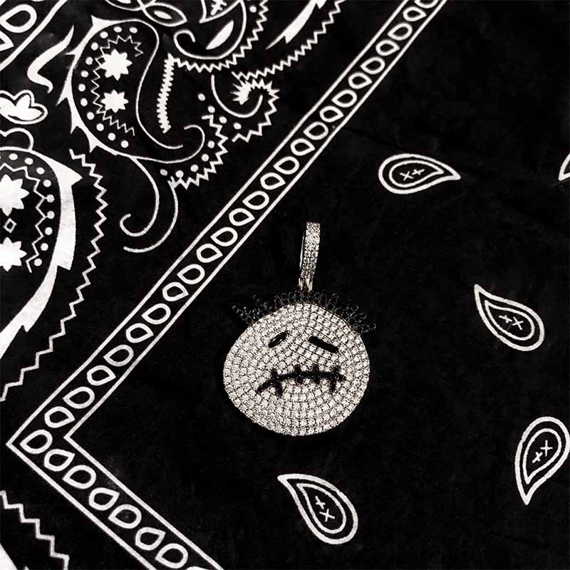 Travis brand inlaid with diamonds natural zircon collarbone necklace grimace European and American hip-hop trend skull pendant