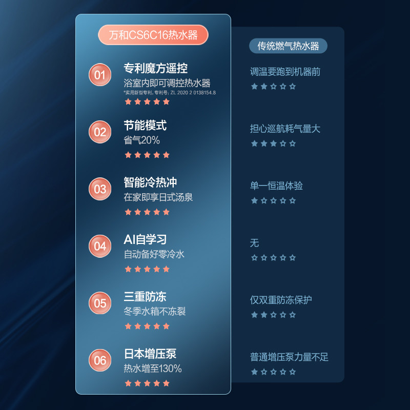 Wanhe gas water heater Electric household natural gas zero cold water 16L liters instant antifreeze intelligent constant temperature CS6