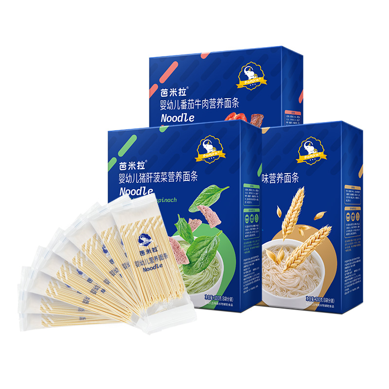 1 box of pork liver and spinach noodles, 1 box of beef and tomato noodles (more photos are more cost-effective) 1 box of organic original noodles