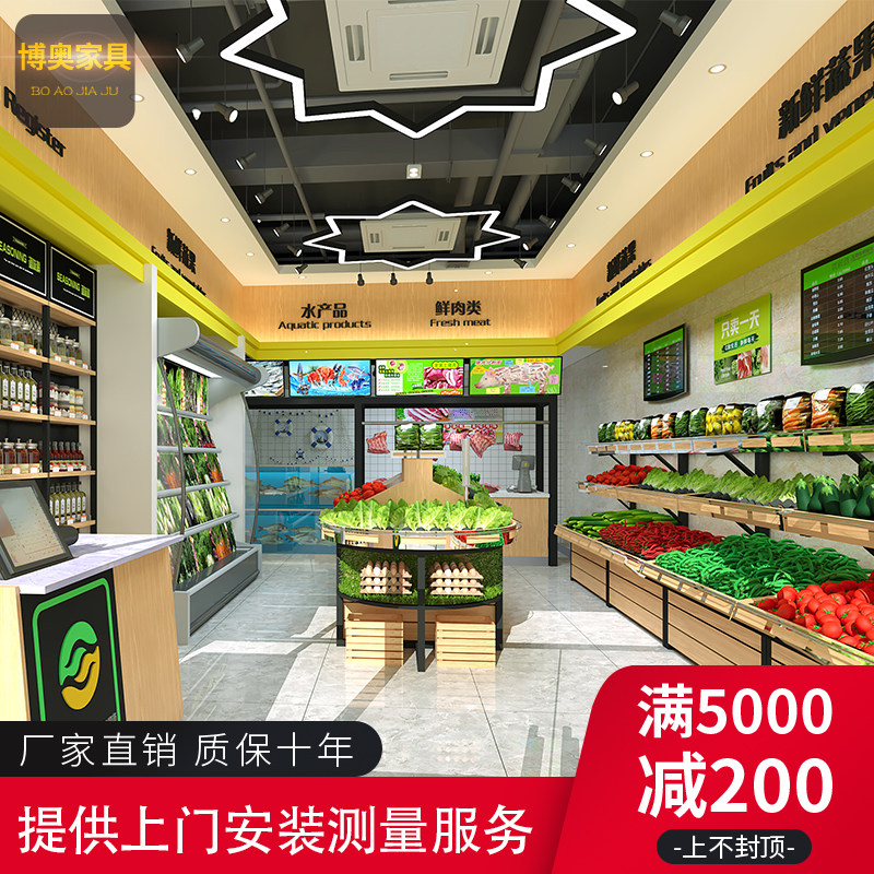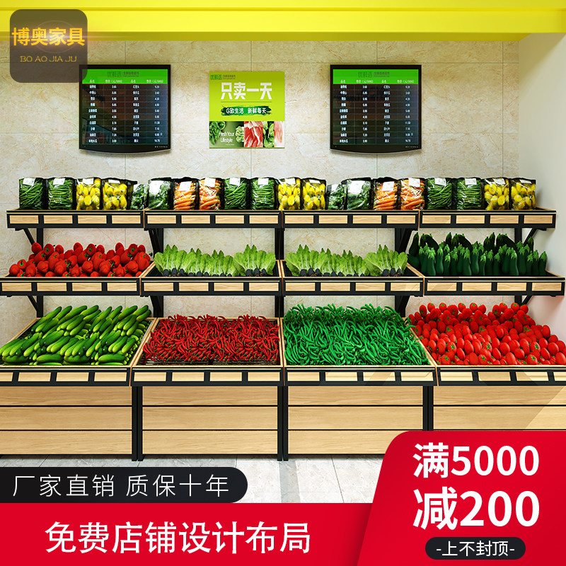 Fruit and vegetable shelf shopping mall supermarket vegetable rack fruit store vegetable store shelf display rack steel wood fruit rack vegetable shelf
