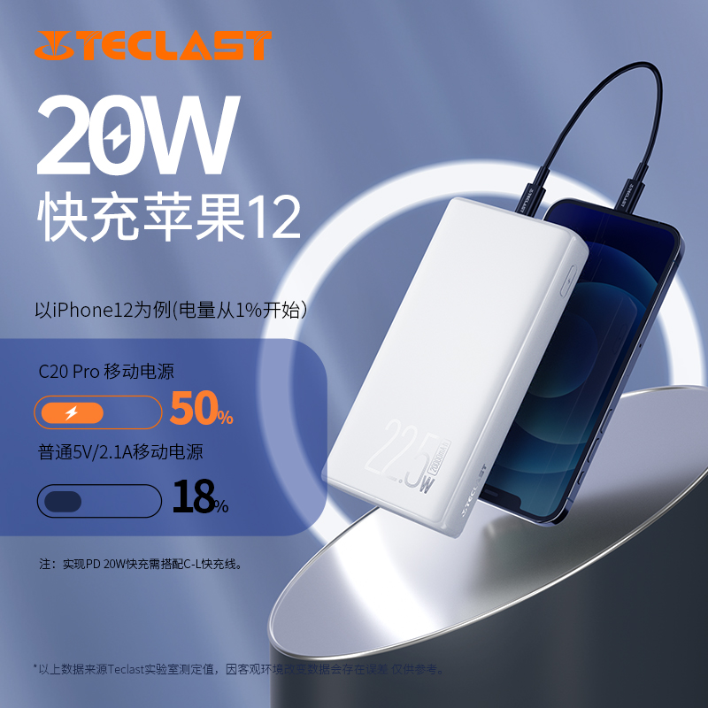(Billion Subsidy) Teclast Fast Charge Mobile Charge 20000 mA PD22 5W Super Capacity Mobile Power Supply 18W Super Fast Charge Portable for Huawei Xiaomi Apple