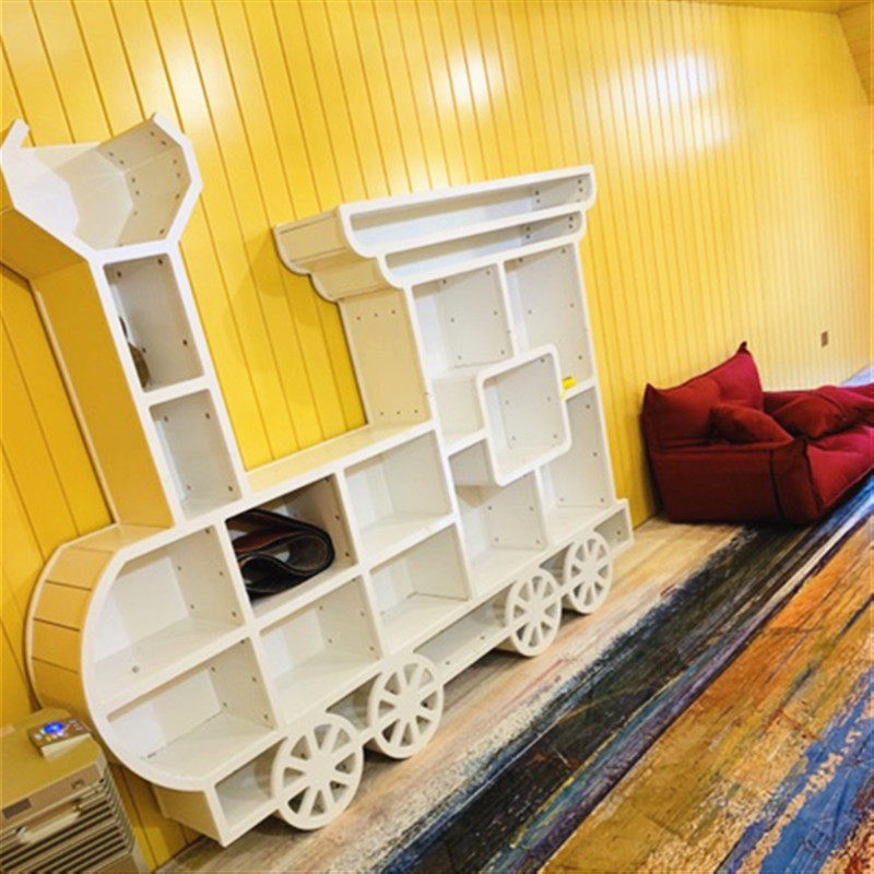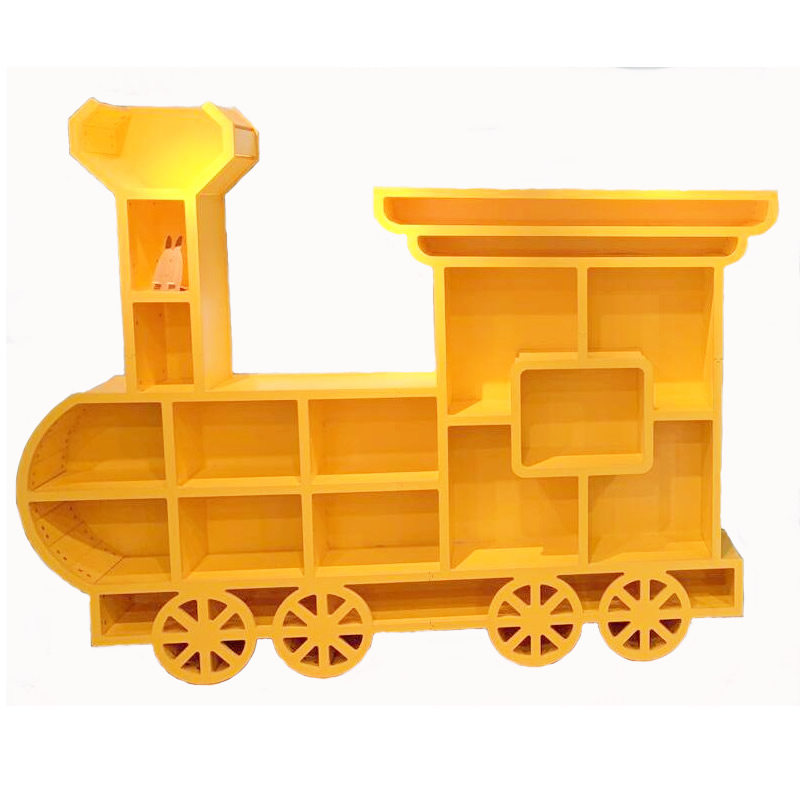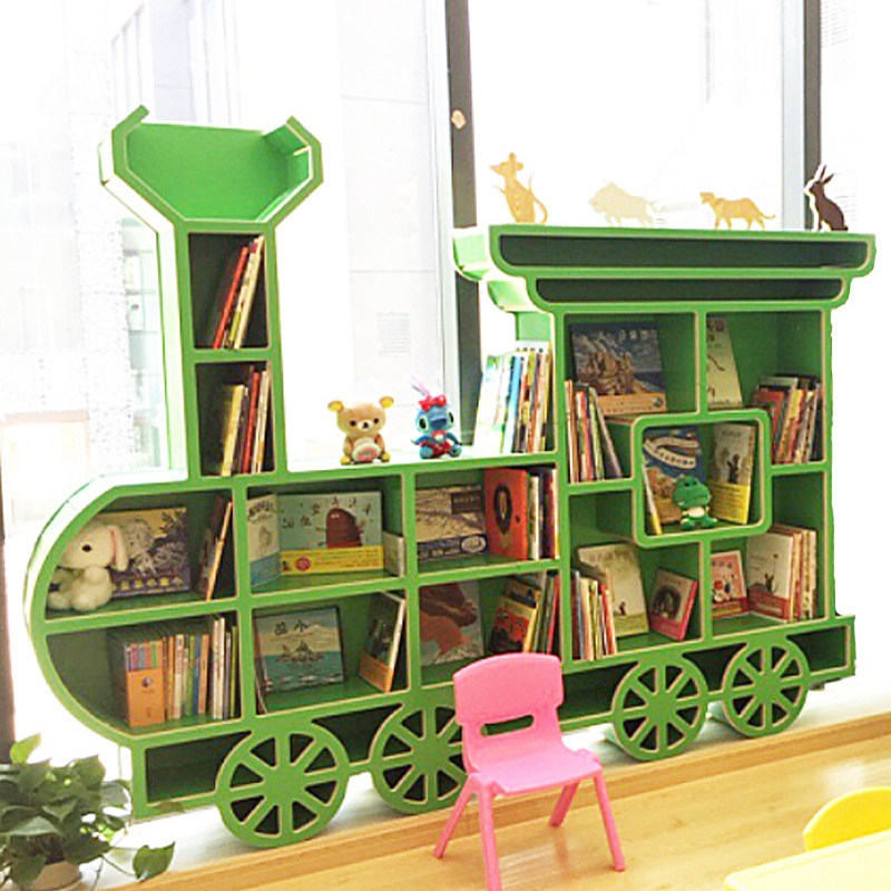 Cartoon locomotive bookcase floor rack children's bookshelf picture book rack library early education center wooden cabinet