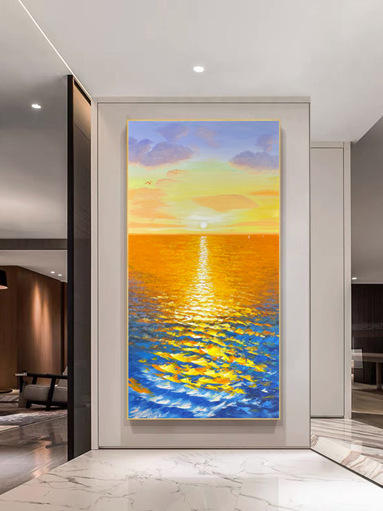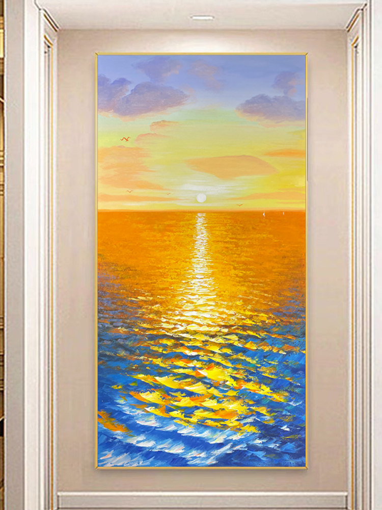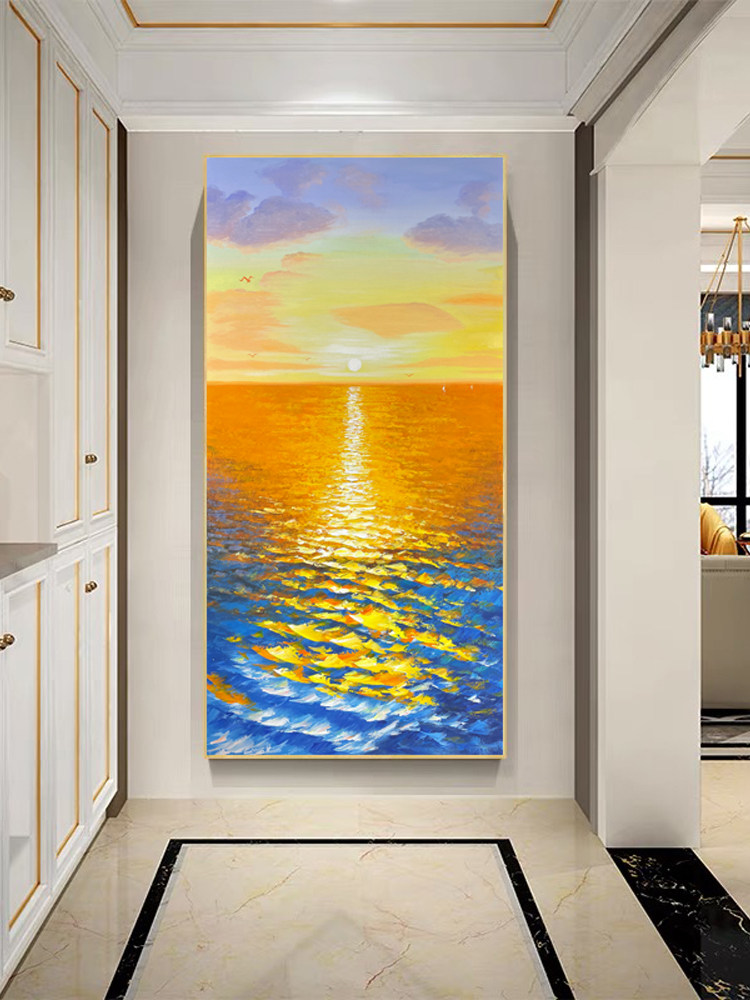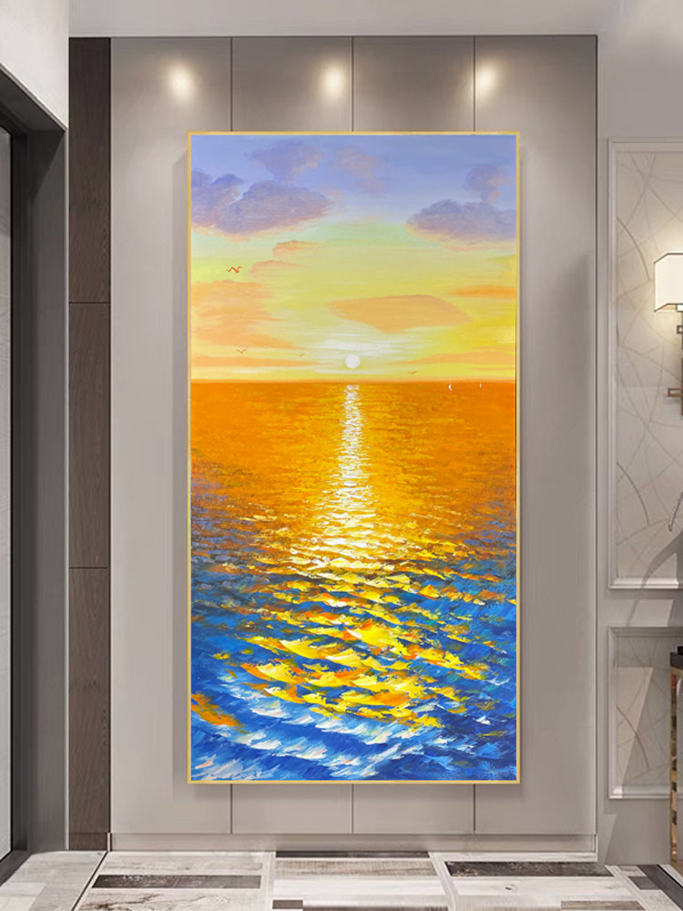 Modern minimalist entry porch decorative painting corridor aisle end vertical hanging painting light luxury sea view sunrise landscape painting