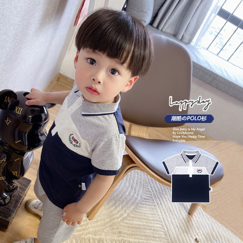 In summer 2022, children's pure cotton thin short - sleeve T - shirt in British British to lead the boy's clothes splice summer dress