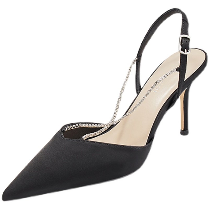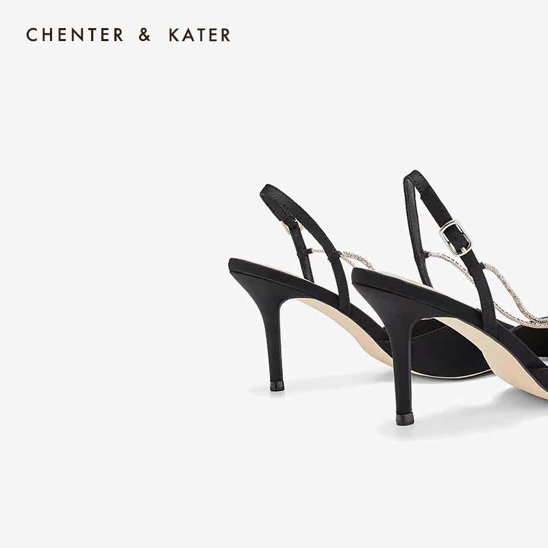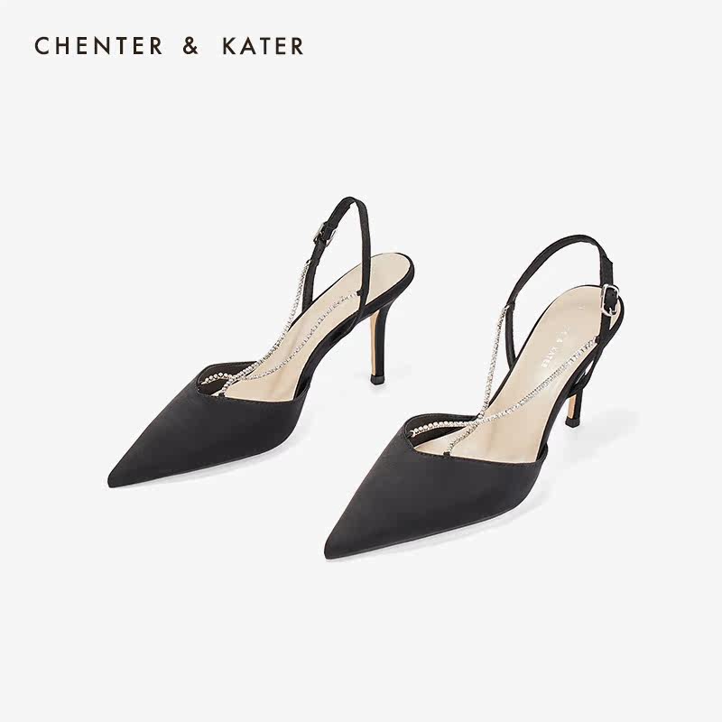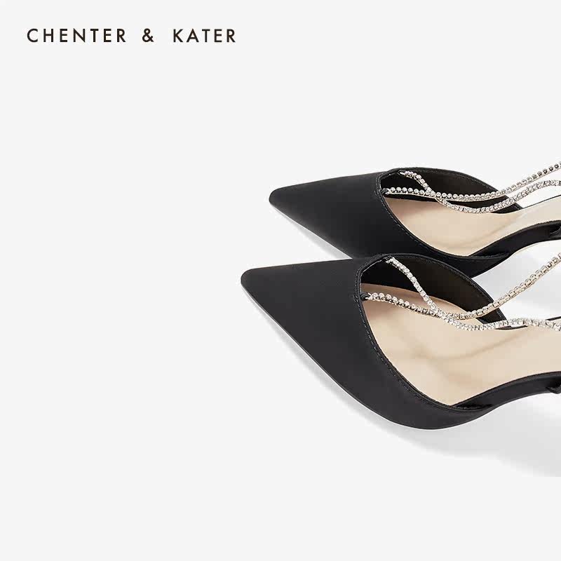 Little CK high heel shoes women summer 2021 new fairy style pointed toe stiletto heel rhinestones word strap strap sandals