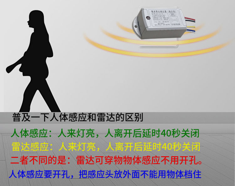 220V microwave radar sensor switch human body delay sensor corridor garage LED ceiling lamp module