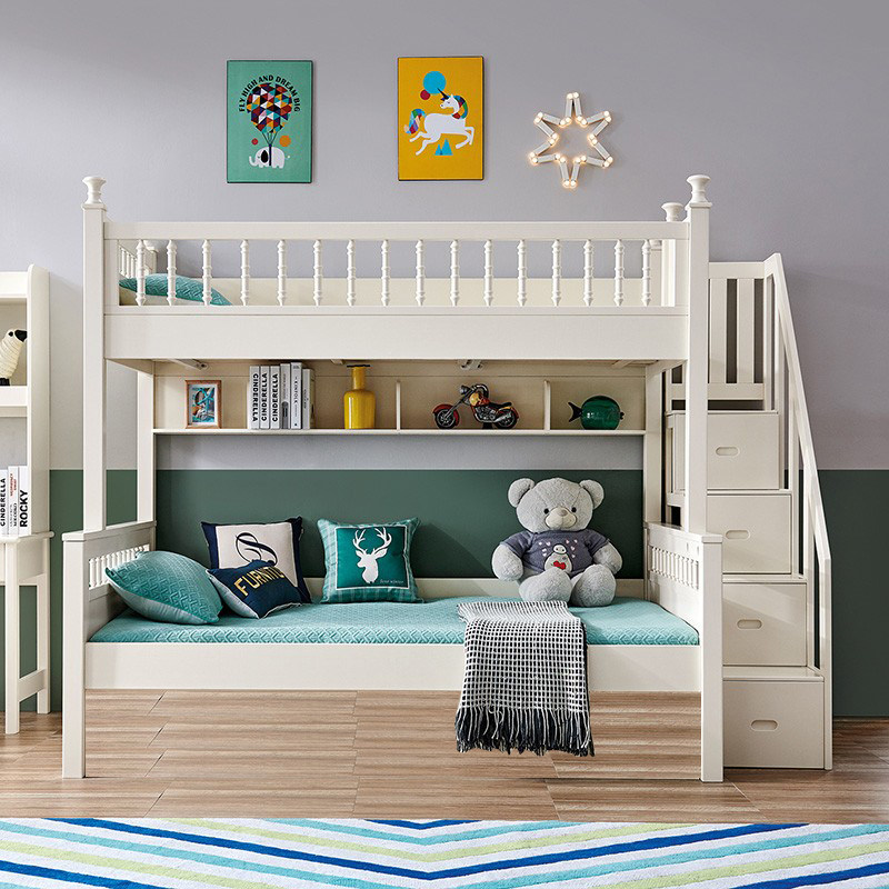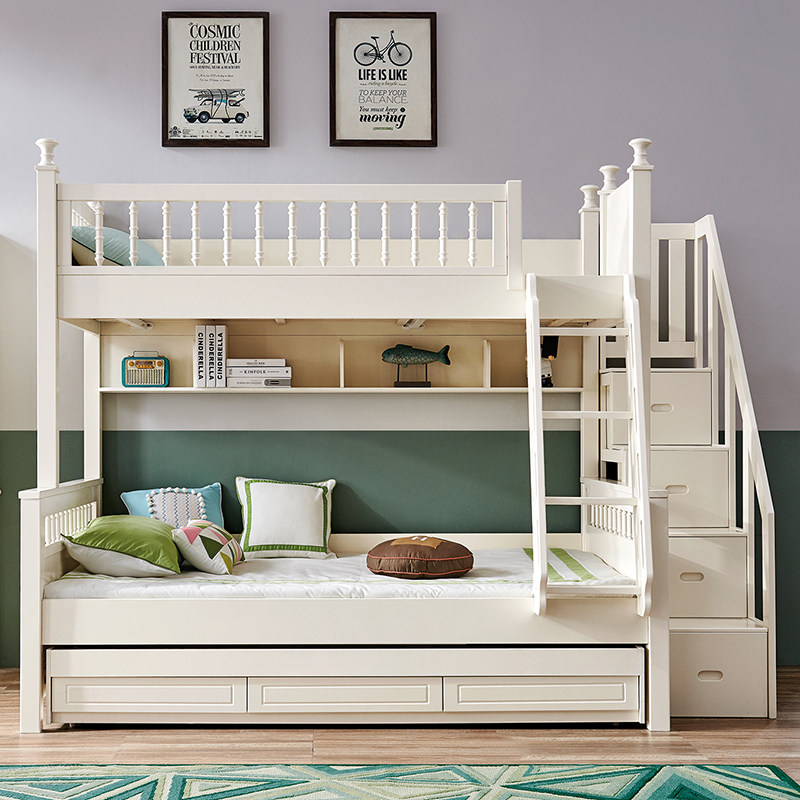 Korean-style children's all-solid wood bunk bed bunk bed with high box bed two-story high and low bed mother bed