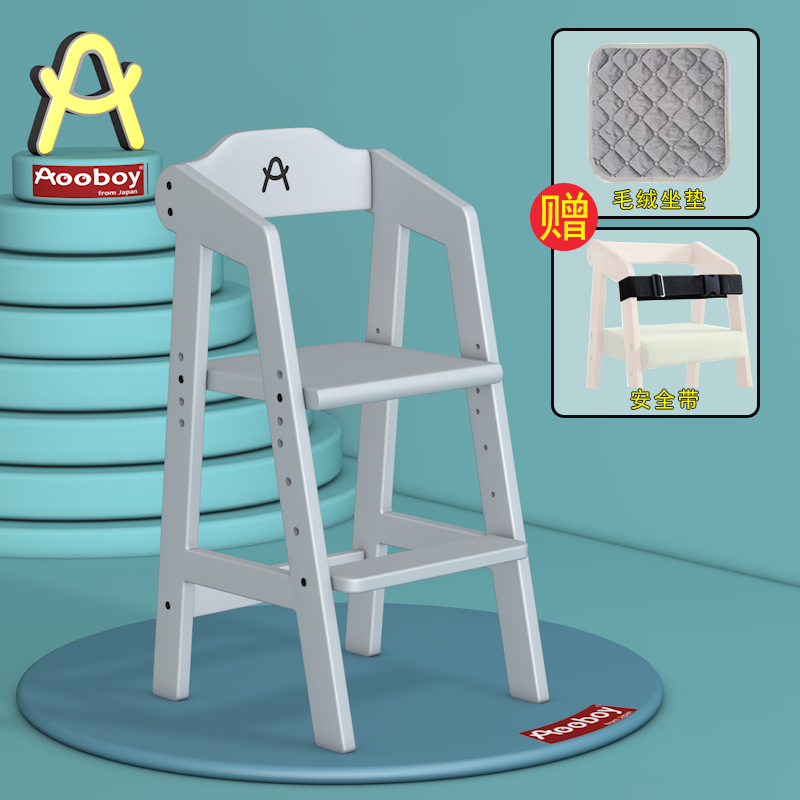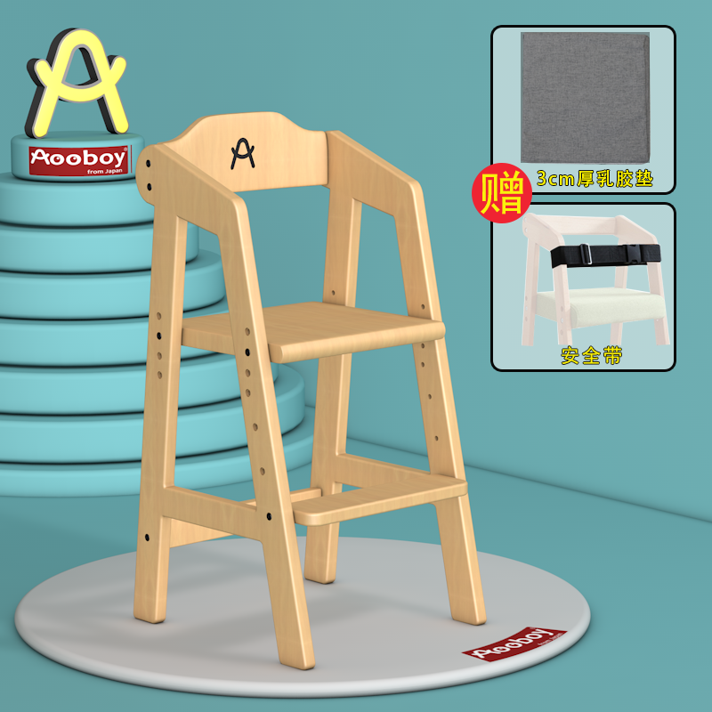 Aooboy Children's dining chair solid wood liftable large baby dining chair with long chair high footstool for home