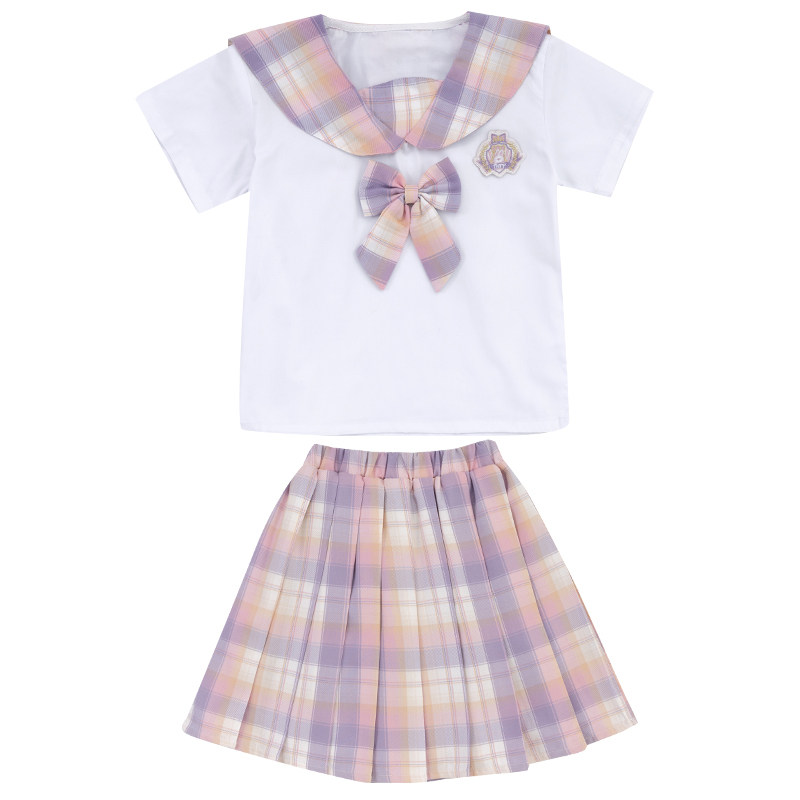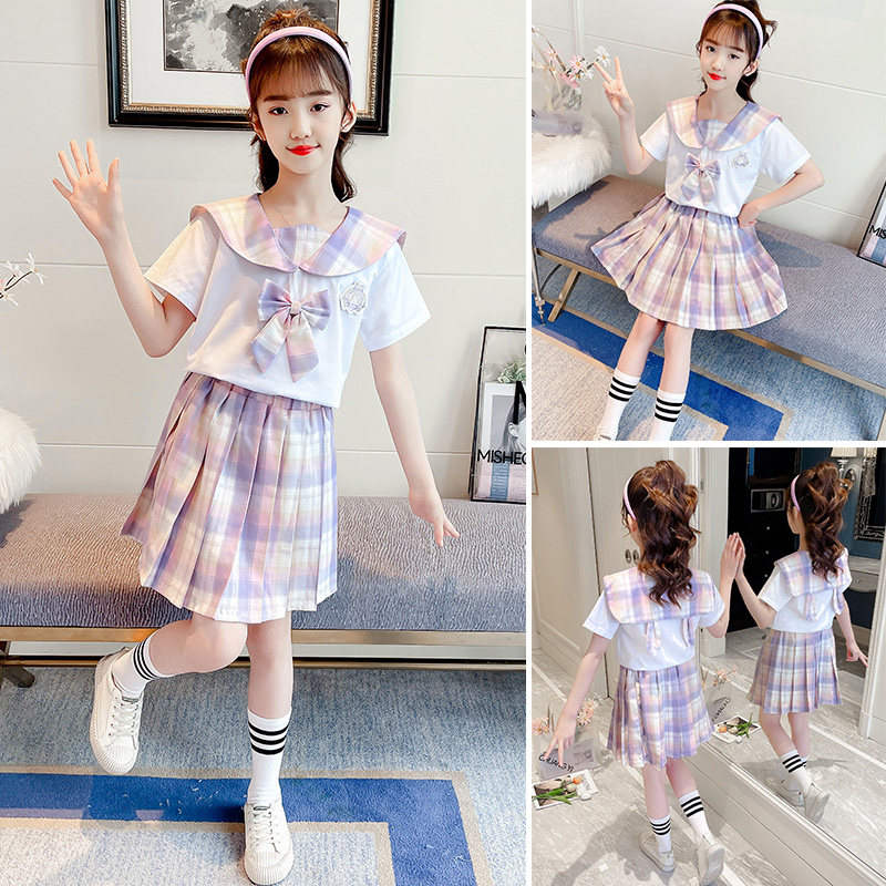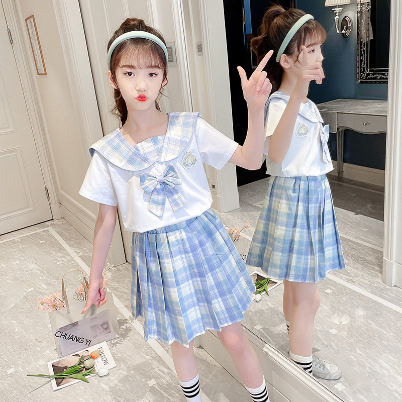 Girls summer clothes 2021 new short-sleeved rabbit ears children JK uniform skirt genuine pleated skirt suit summer primary school students