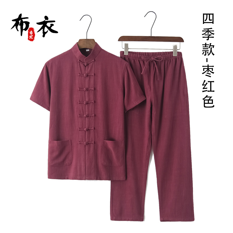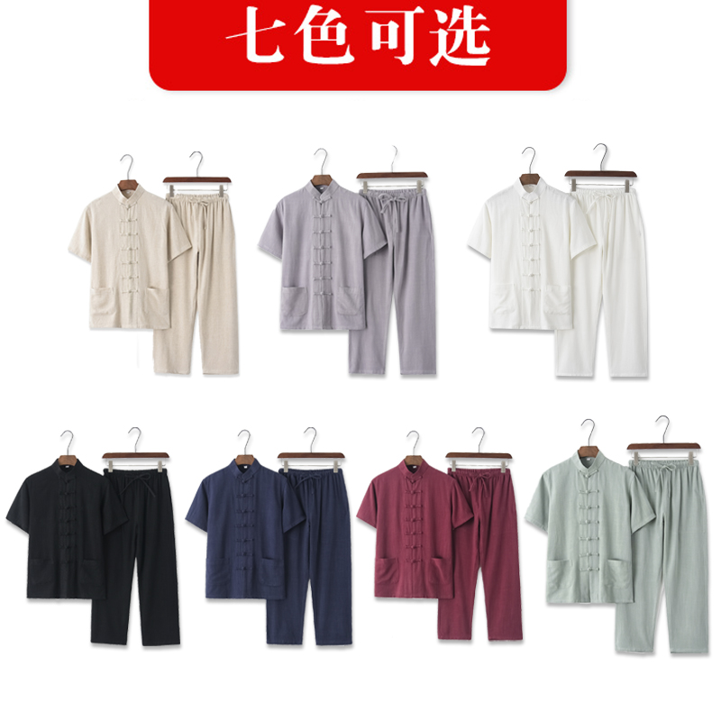 Tang suit men's summer suit middle-aged and elderly cotton and linen loose casual short-sleeved Chinese style Chinese half-sleeved dad's suit large size
