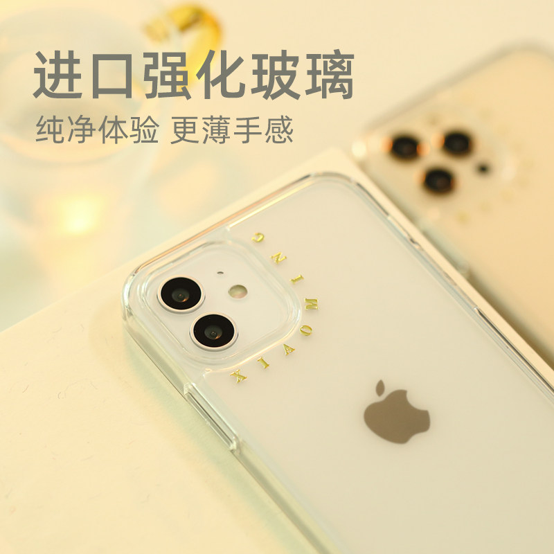 Suitable for Apple 12 mobile phone protective shell iphone12promax custom transparent glass protective shell couple 13 all-inclusive anti-fall 12pro frosted 11 new x English Xiaomeng old