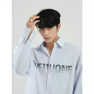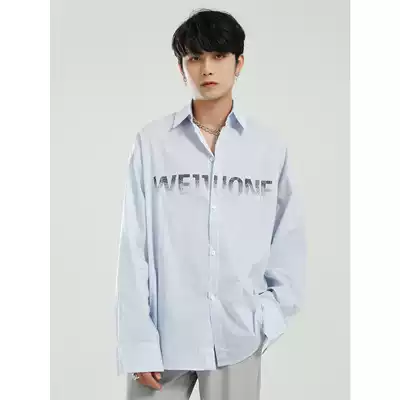 Dosho Men's Korean Retro Design Sense Joker Loose hipster Letter Striped Casual Shirt