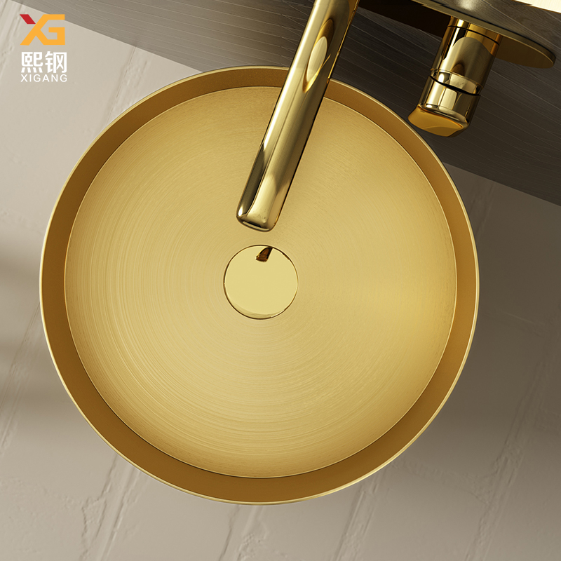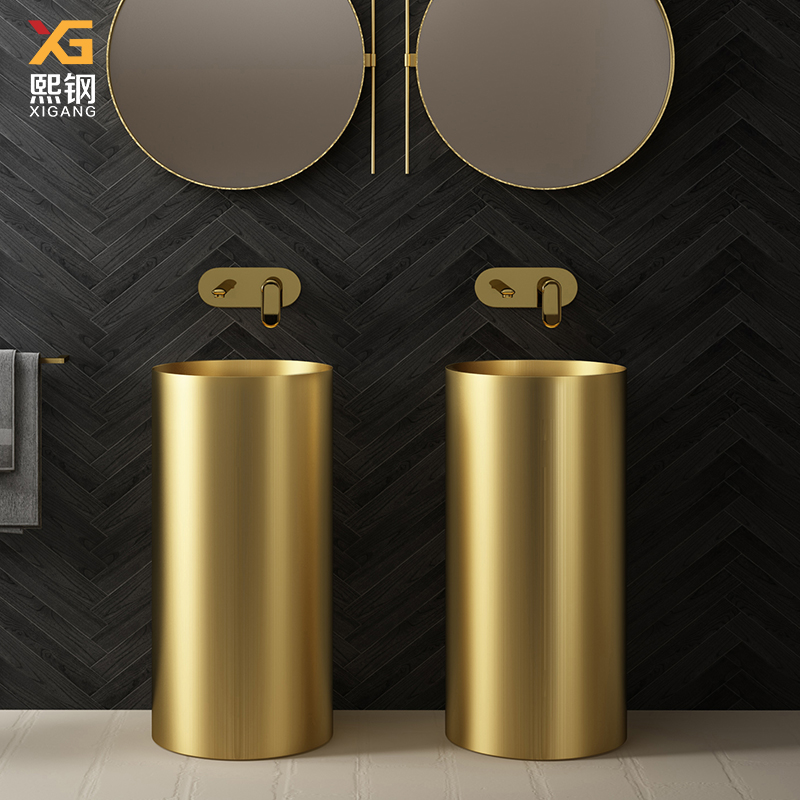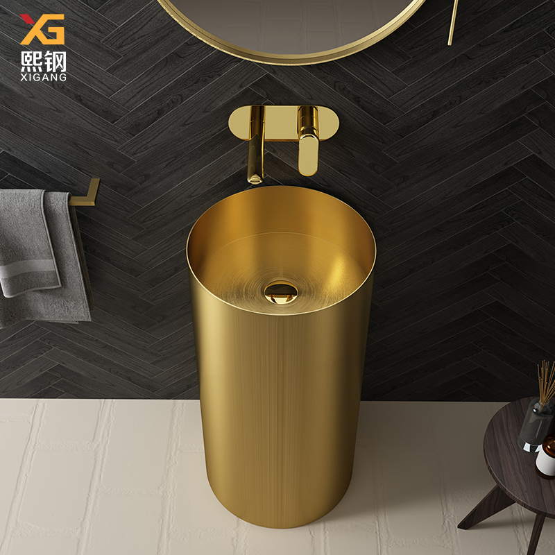 Stainless steel column washbasin light luxury golden homestay hotel bar cylindrical washbasin integrated column basin