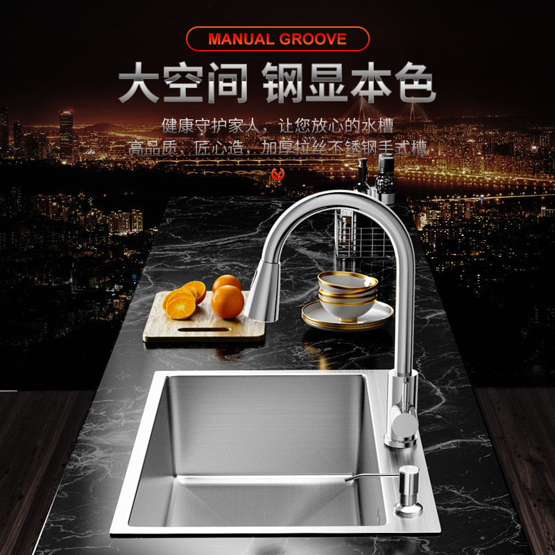 Kitchen washing basin single sink 304 stainless steel brushed washing basin manual washing sink thickened sink sink household