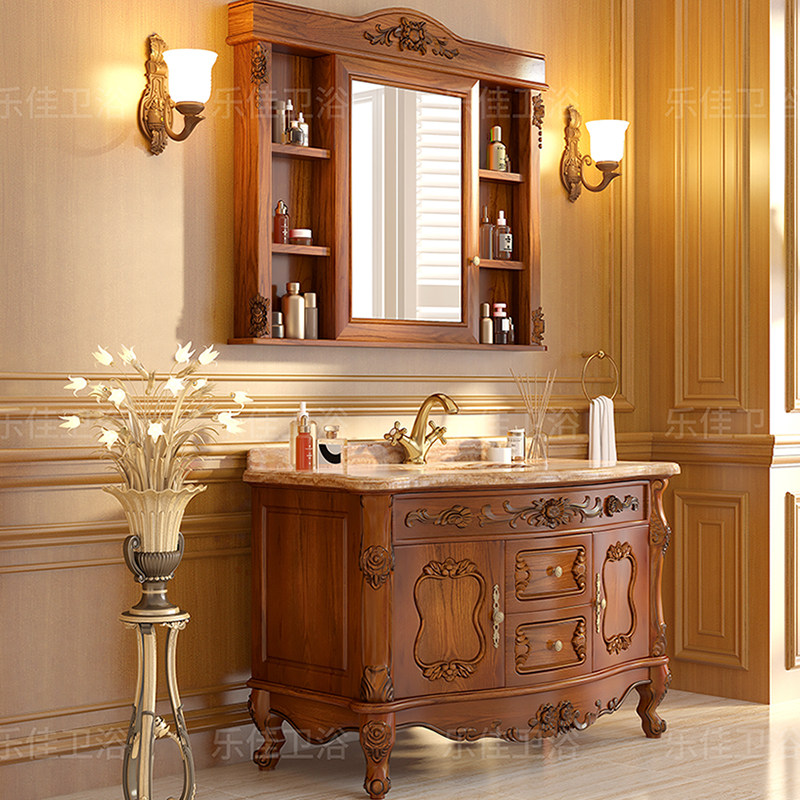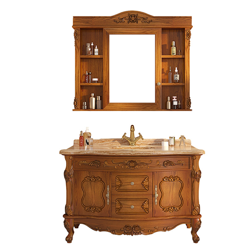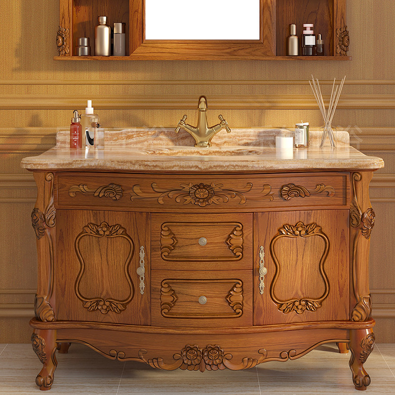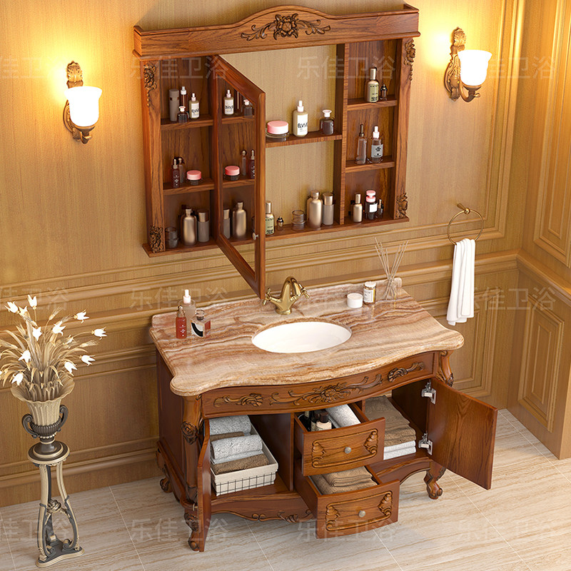 Eurobath Room Cabinet Red Oak Wood Imitation Ancient Bath Cabinet Solid Wood Wash Terrace Makeup Room Marble Wash Basin Cabinet Composition