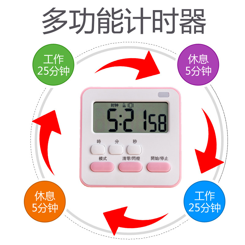 Timer reminder students small alarm clock kitchen self-discipline regular learning to do problem time management can mute