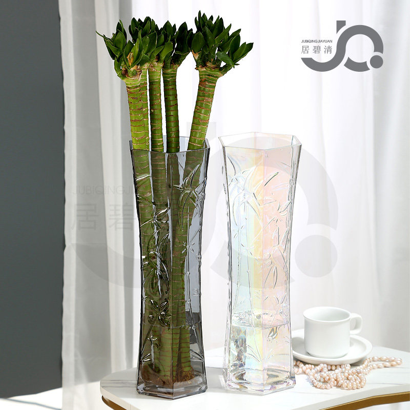 Vase glass extra large floor-to-ceiling desktop decoration hydroponic rich bamboo water bamboo hexagonal water-raising living room simple home