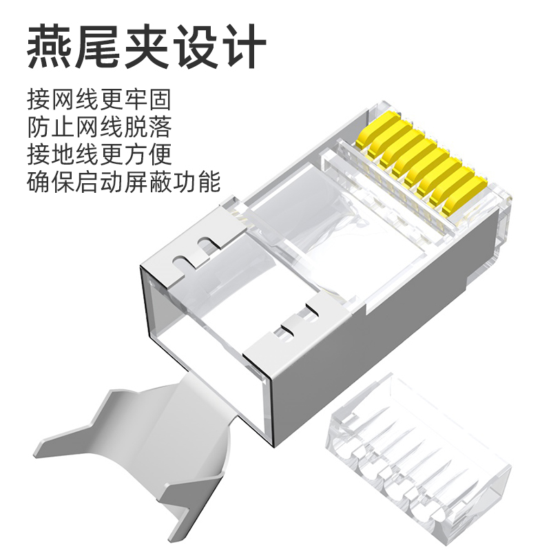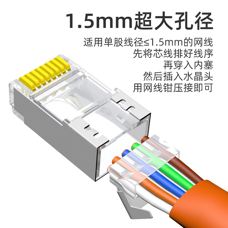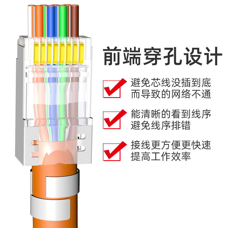 Cat7 through-hole crystal head gold-plated 10 gigabit ca6a super six shielded thick network cable CAT7 copper shell perforated connector